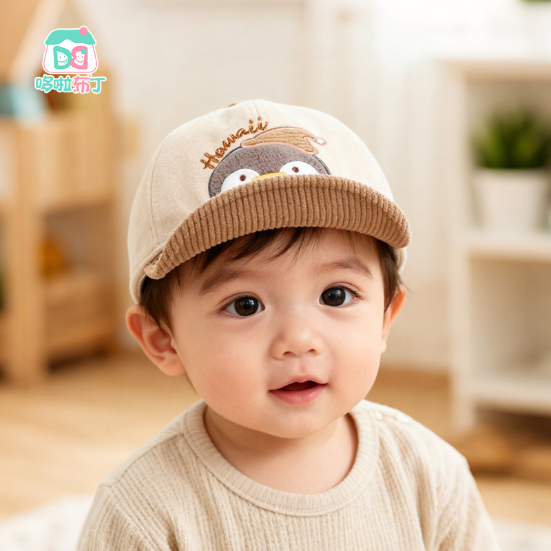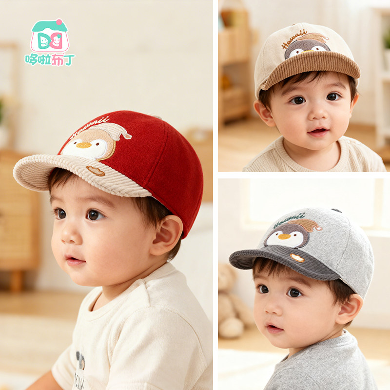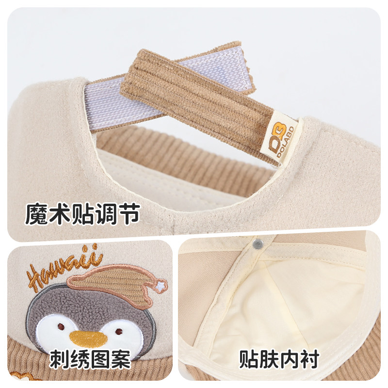 春秋宝宝薄毛呢鸭舌帽小孩刺绣小企鹅遮阳帽子男女儿童软檐棒球帽