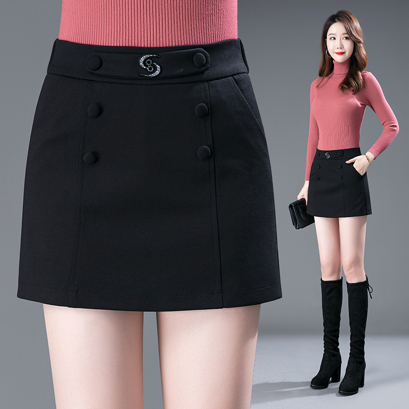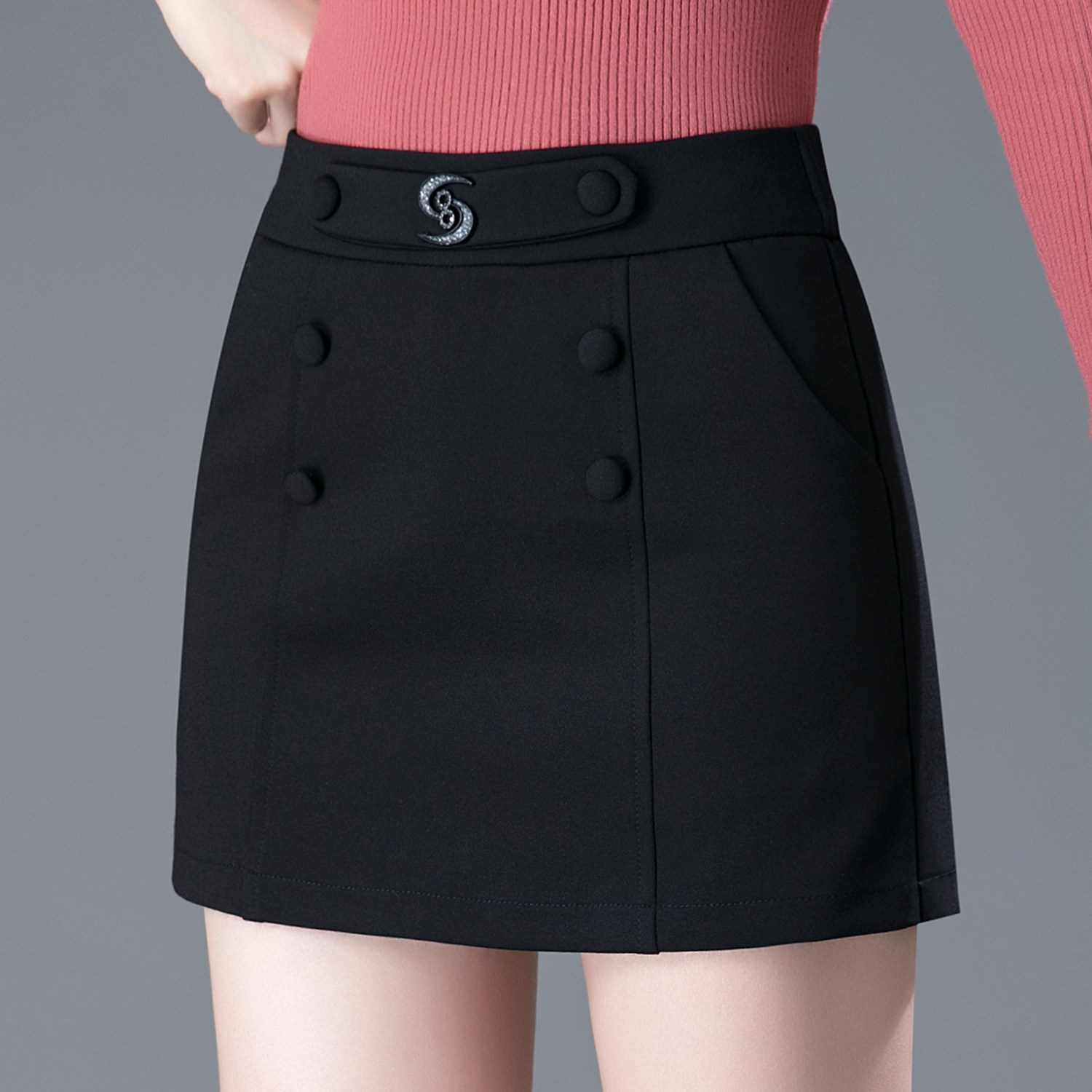 秋冬黑色裙裤弹力高腰显瘦短裤女假两件裤裙短款外穿靴裤前裙后裤