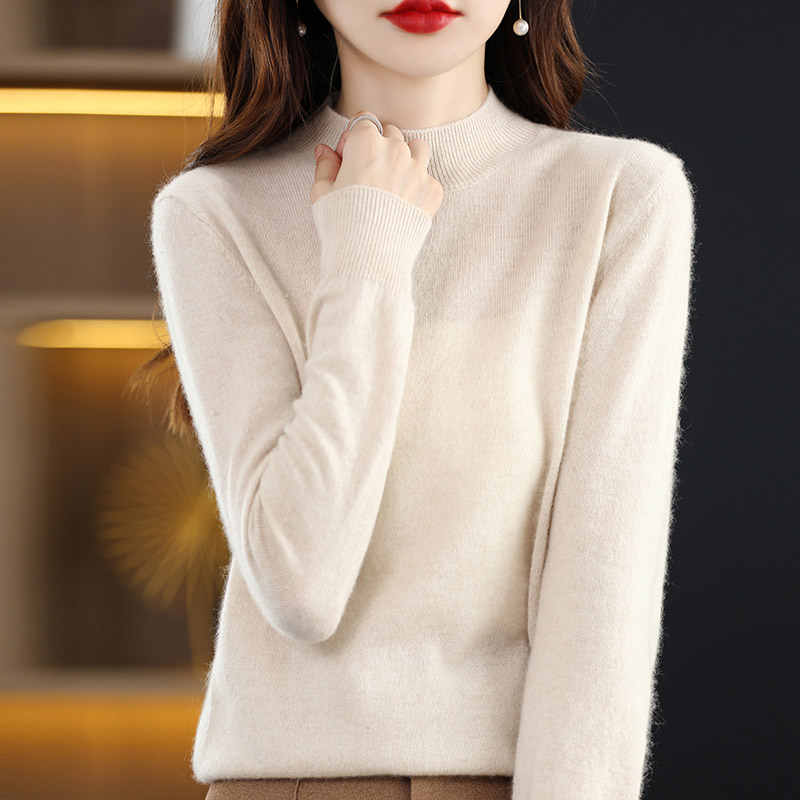 一体成衣无缝羊绒衫女100纯羊毛衫2024秋季半高领宽松套头打底毛