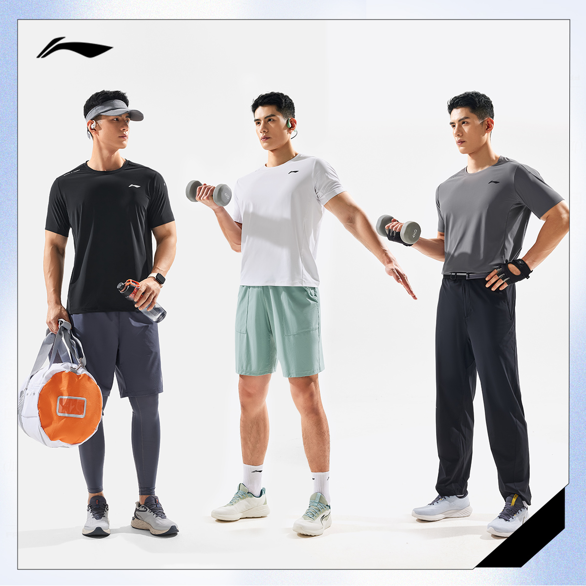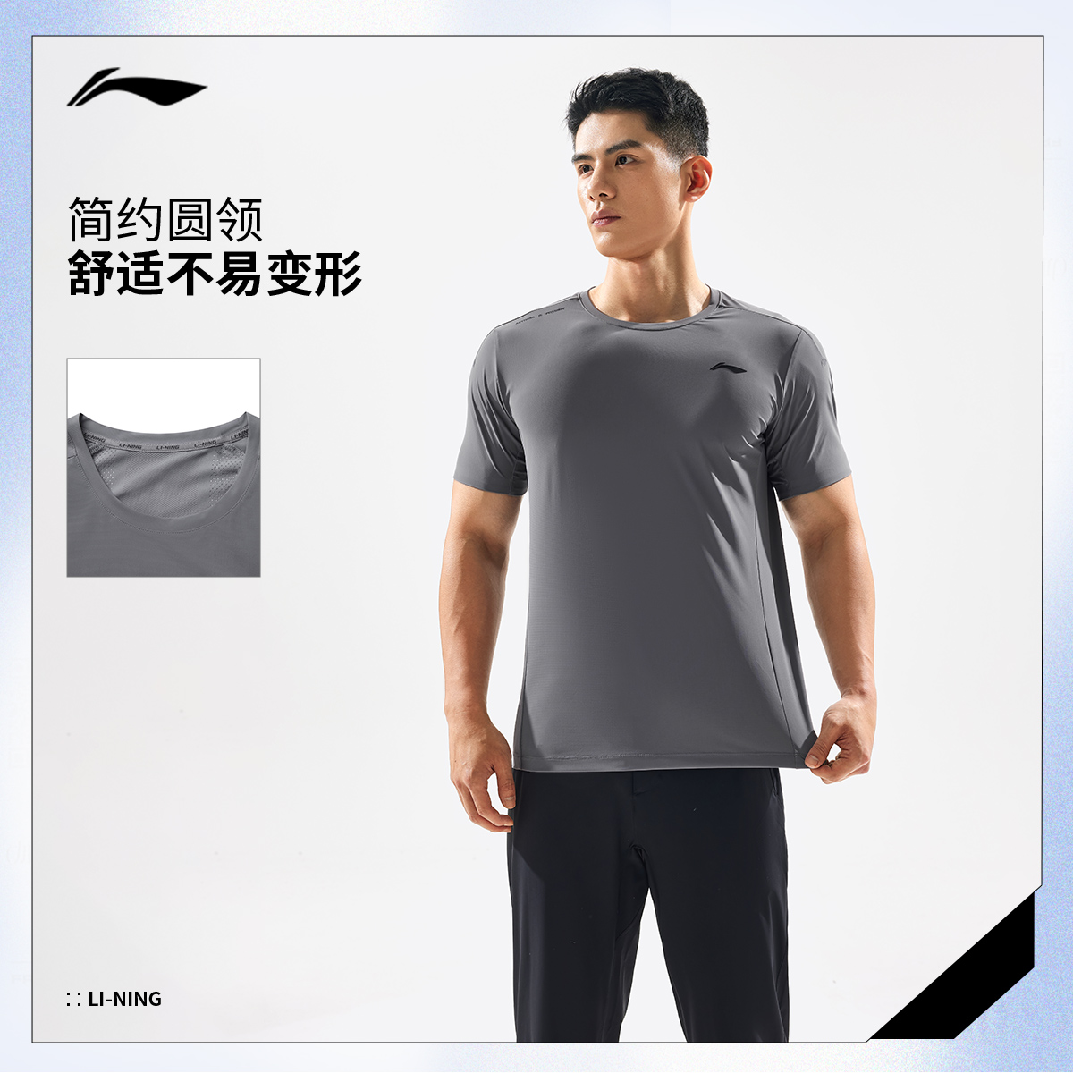 李宁短袖T恤男士2025新款健身系列立体裁剪圆领上衣针织运动服