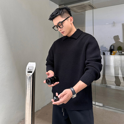 二十二号穿搭【霸道总裁定制款】翻领简约毛衣男冬季针织衫毛线衣