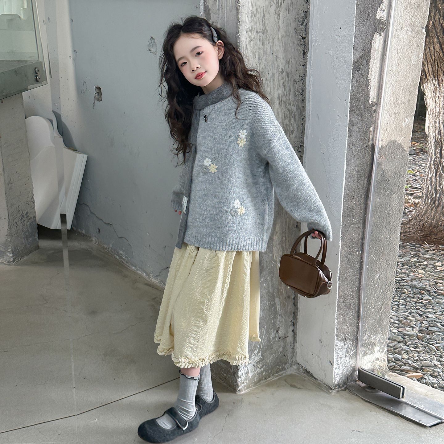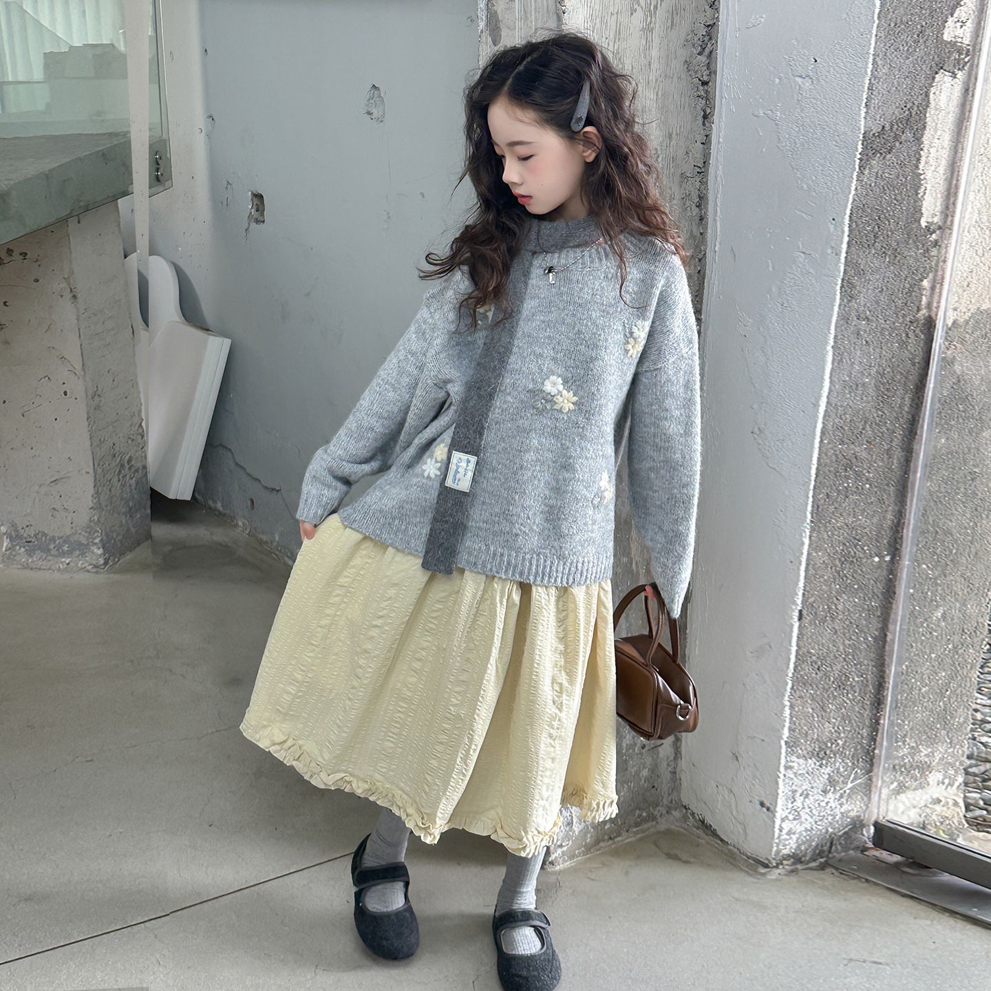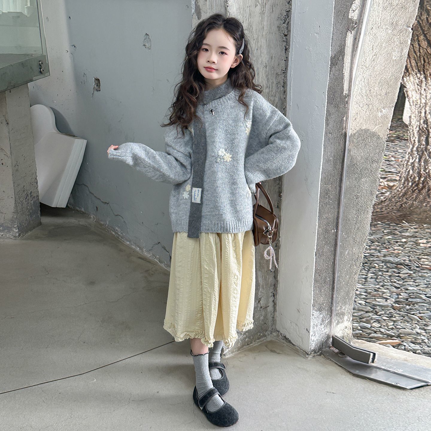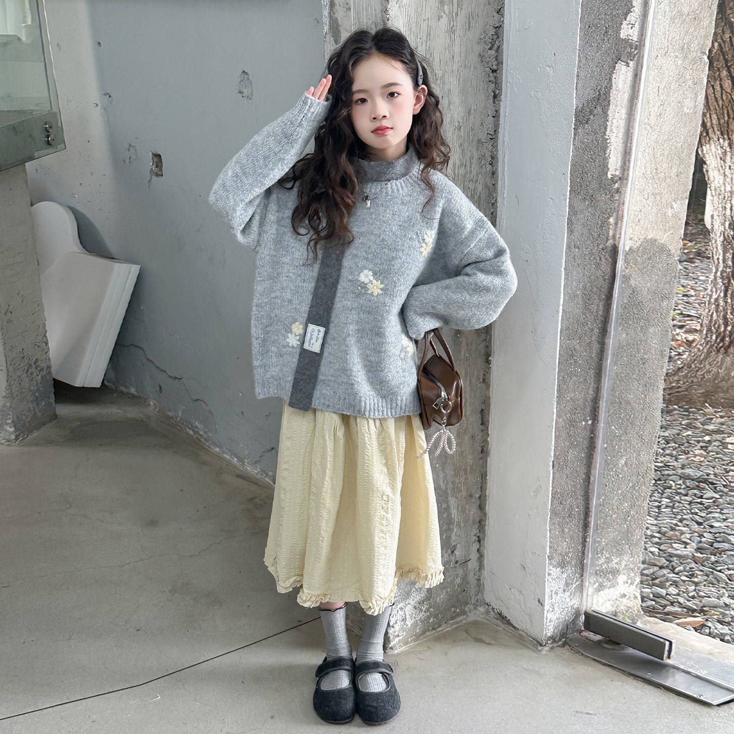 女童绣花毛衣秋冬装慵懒风针织衫卫衣大童女孩打底衫可外穿毛线衣