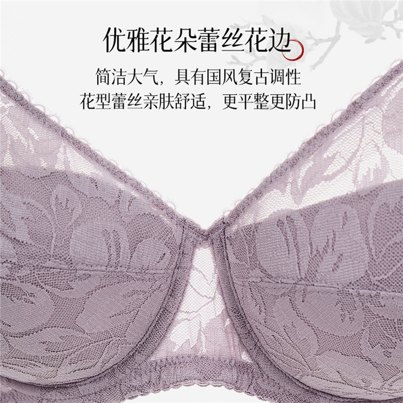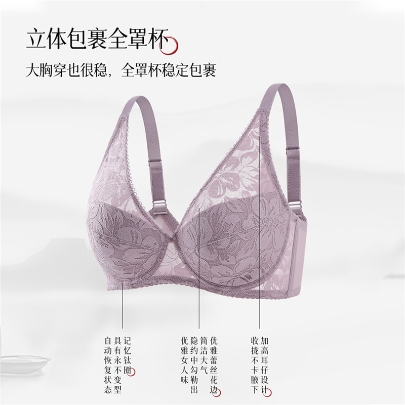 奥丽侬内衣女大胸显小聚拢防下垂收副乳性感蕾丝全罩杯大码文胸罩