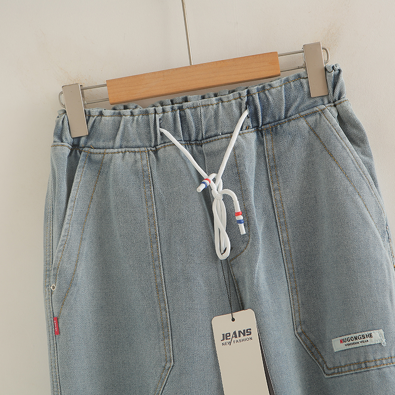 松紧腰牛仔裤男宽松哈伦束脚裤子秋季oversize潮流拼接百搭九分裤