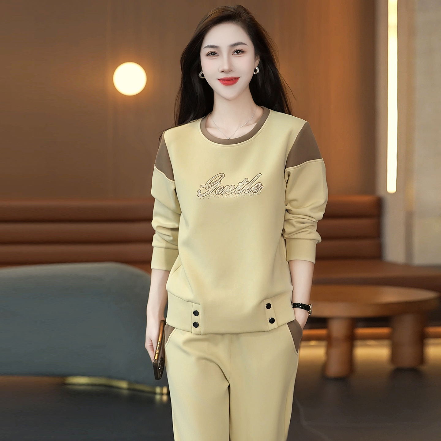 时尚休闲运动套装女2025秋季新款小个子气质百搭减龄阔腿裤两件套