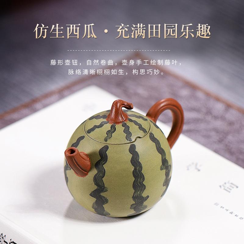 宜兴原矿绿泥小品紫砂壶手工制 仿生西瓜茶壶120cc小容量创意茶具