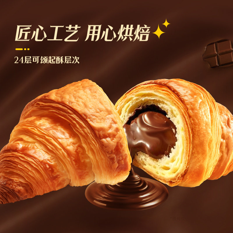 曼可顿巧克力味夹心可颂面包可可味爆浆流心牛角包学生早餐面包