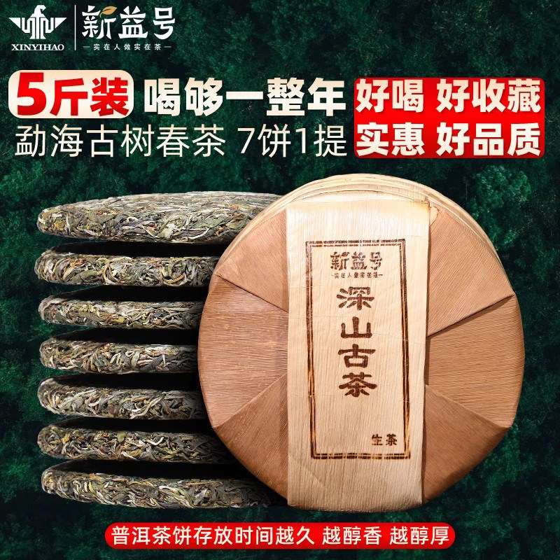 普洱茶生茶2025新益号古树生茶饼云南七子饼勐海普洱茶生普洱茶叶