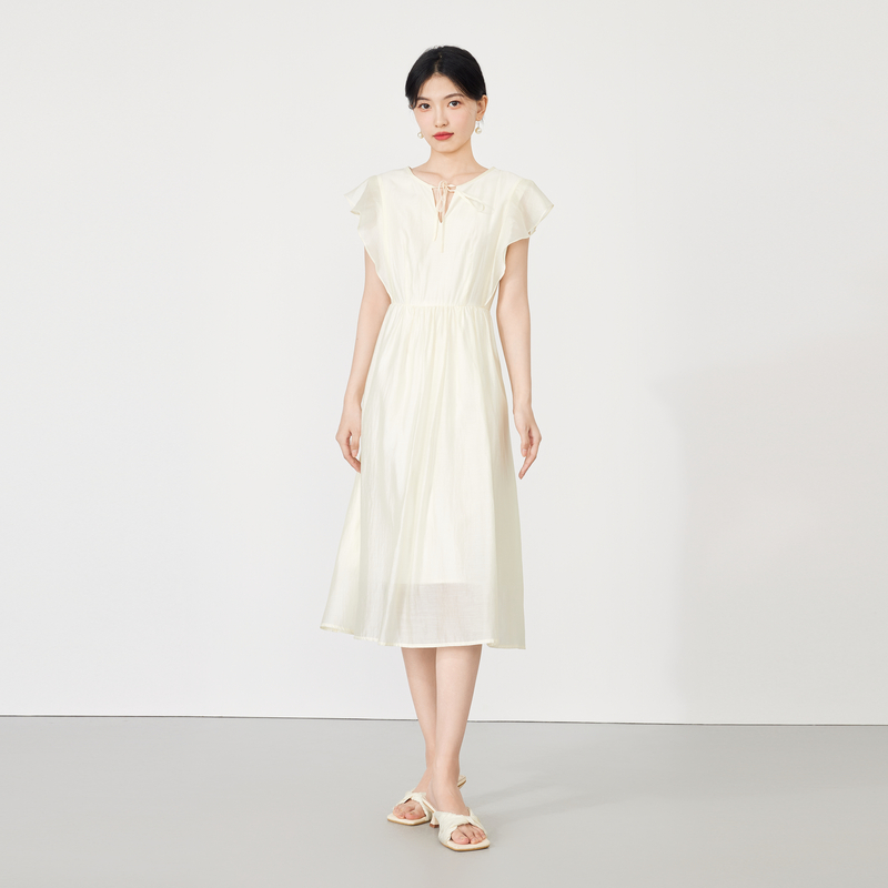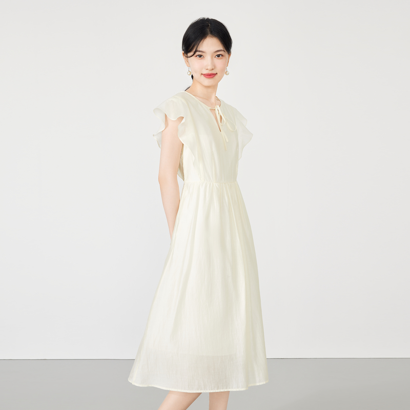 秋水伊人断码清仓莱赛尔浪漫简约连衣裙夏季女装无袖V领A摆裙子