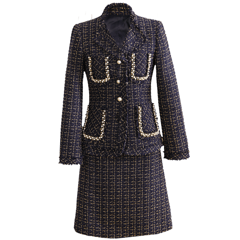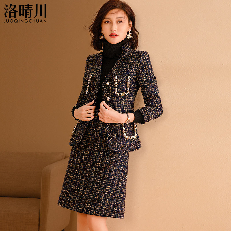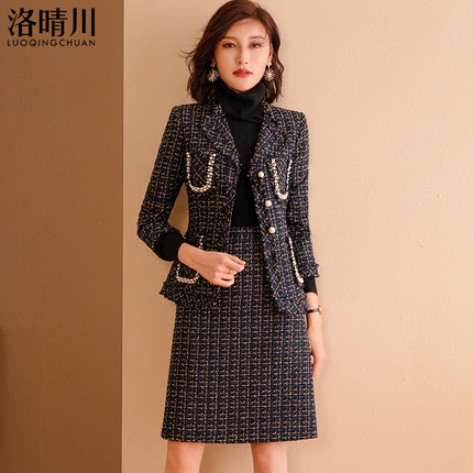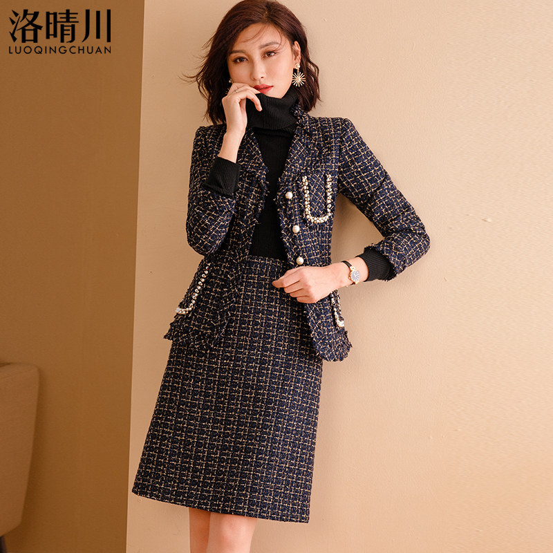 洛晴川小香风套装女冬季名媛春秋新款气质时尚粗花呢半身裙两件套