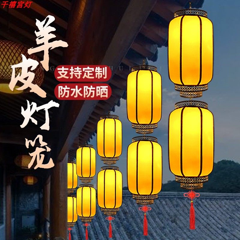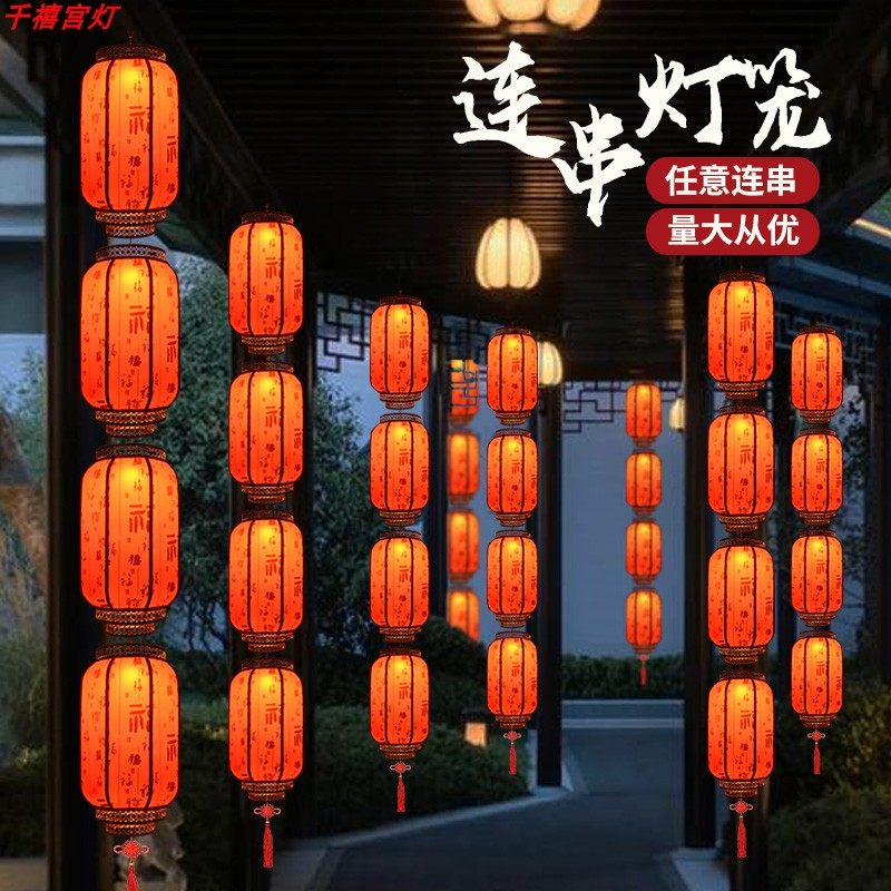 连串灯笼新年装饰户外防水仿古中式宫灯饭店景区布置羊皮广告灯笼