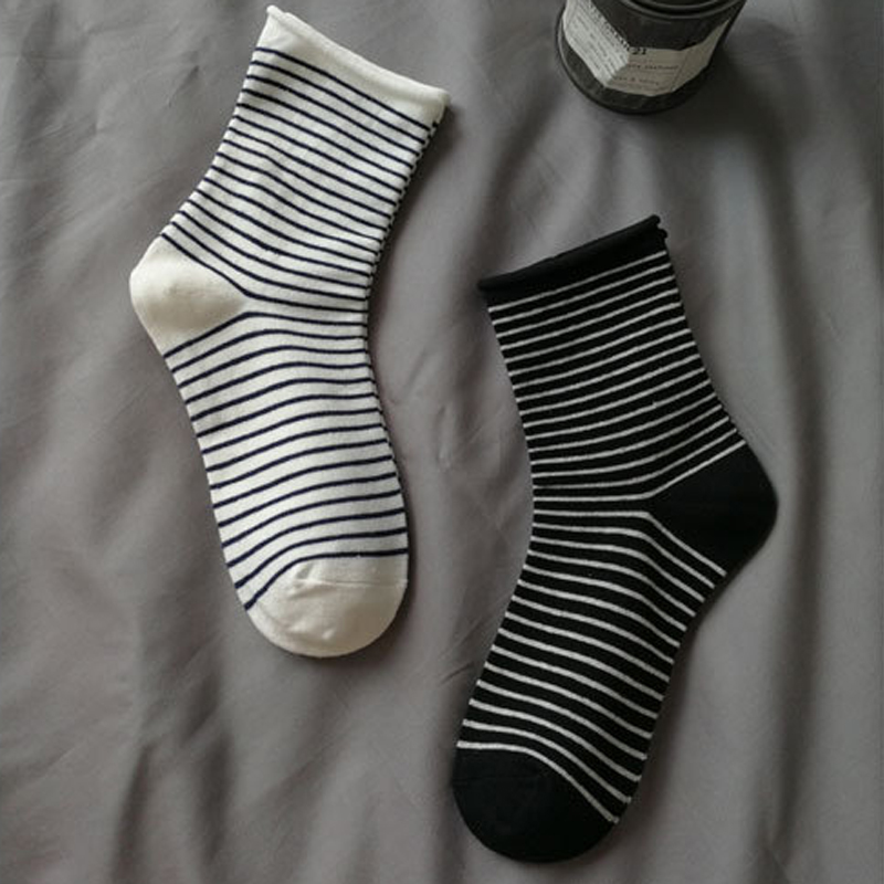袜子女堆堆袜秋冬新款日系条纹卷边中筒学院风运动纯棉松口女袜