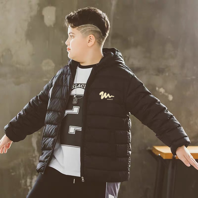 胖童装男童羽绒服外套冬装中大童加肥加大胖男孩青少年轻薄羽绒衣