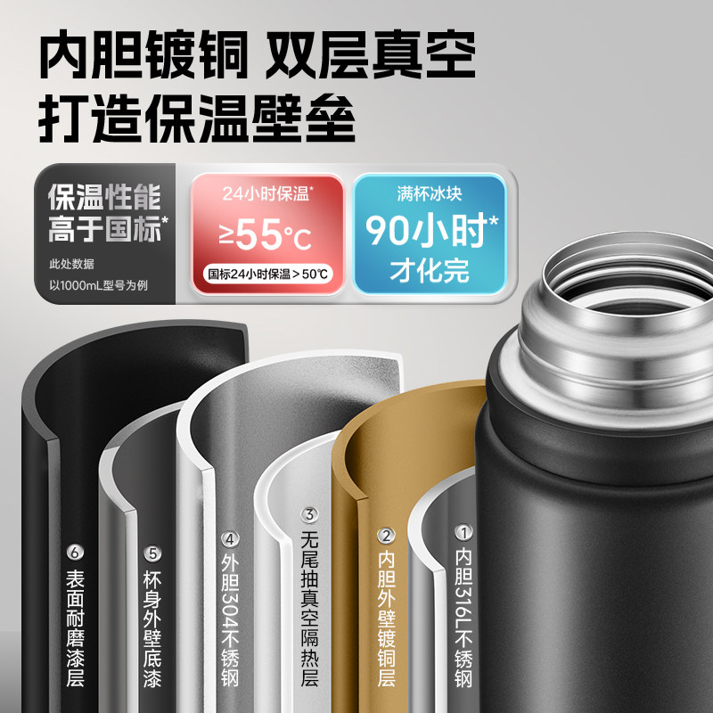 苏泊尔保温水杯壶大容量男款不锈钢户外保温杯大号2025新款茶杯子