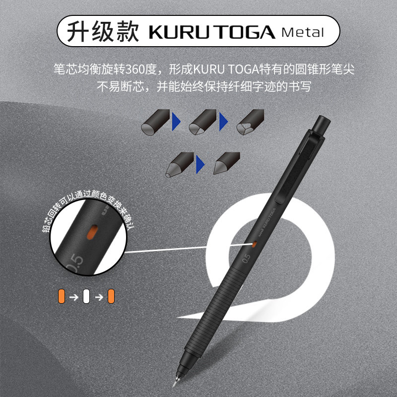 日本uni三菱自动铅笔M5-KH黑科技铅笔KuruToga自转铅芯金属0.5