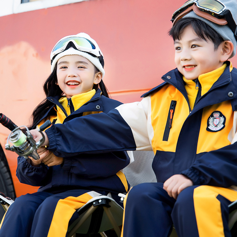 学院风黄色校服套装小学生秋冬新冲锋衣防风加厚儿童班服幼儿园服