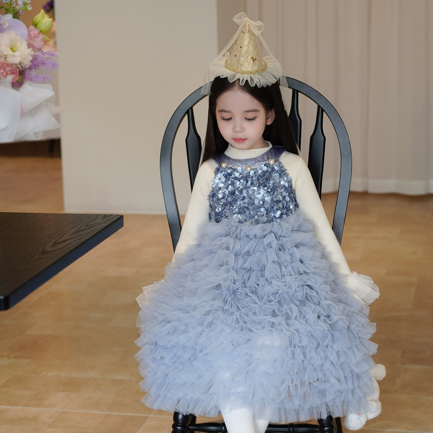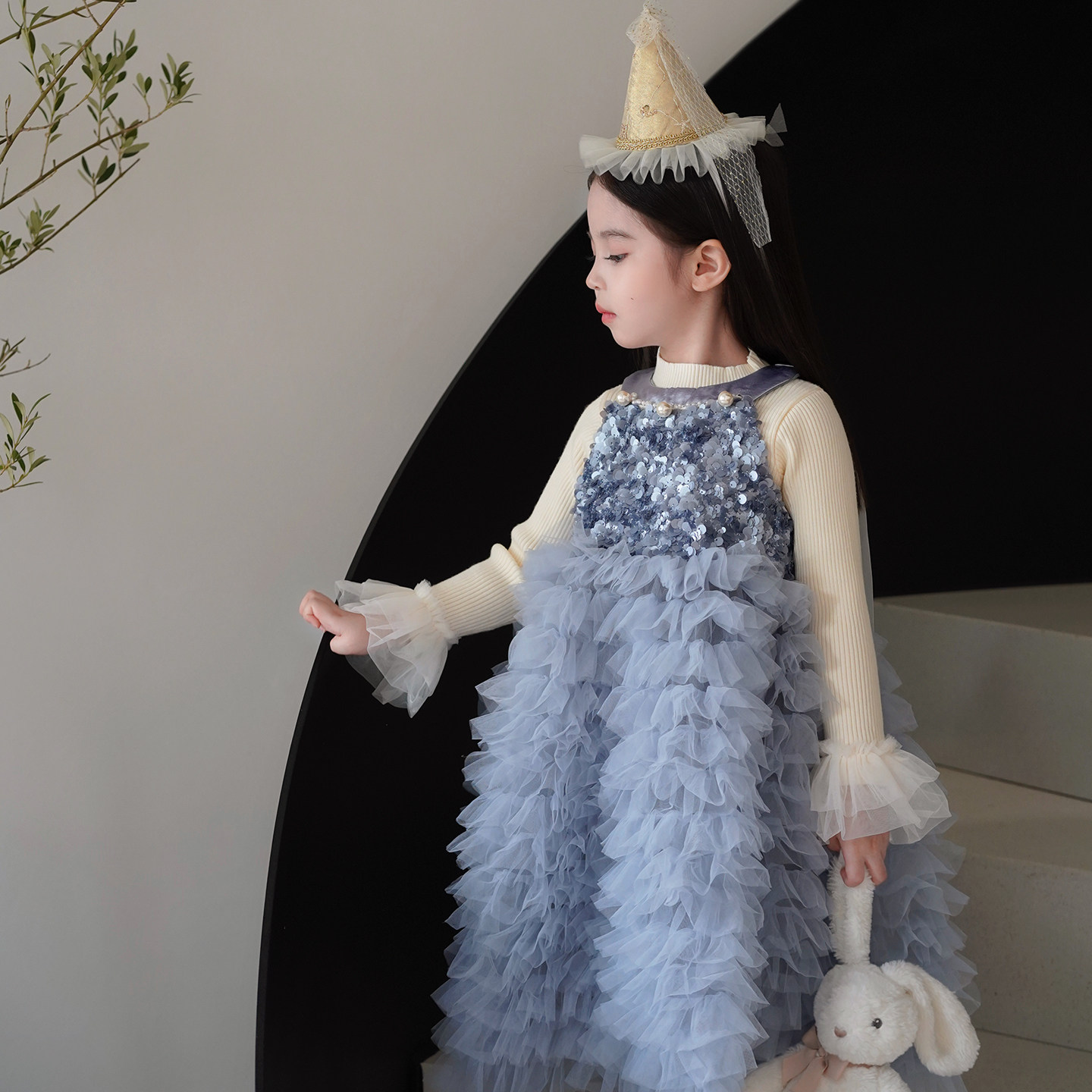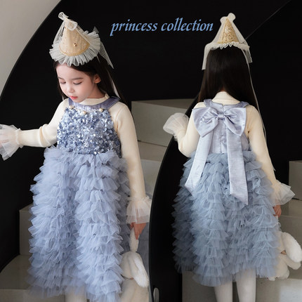 奶油baby女童高级感连衣裙加绒2025秋冬新款女宝宝亮片公主裙新年