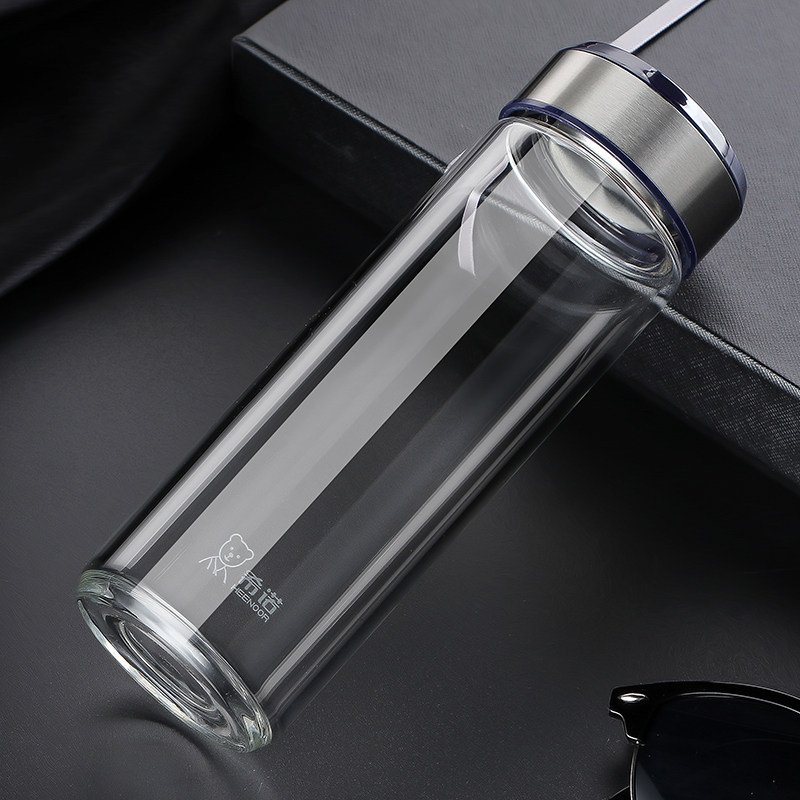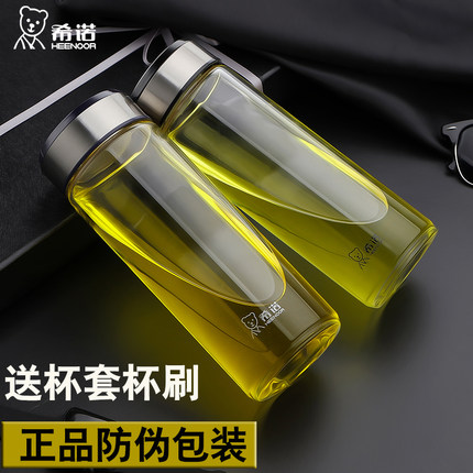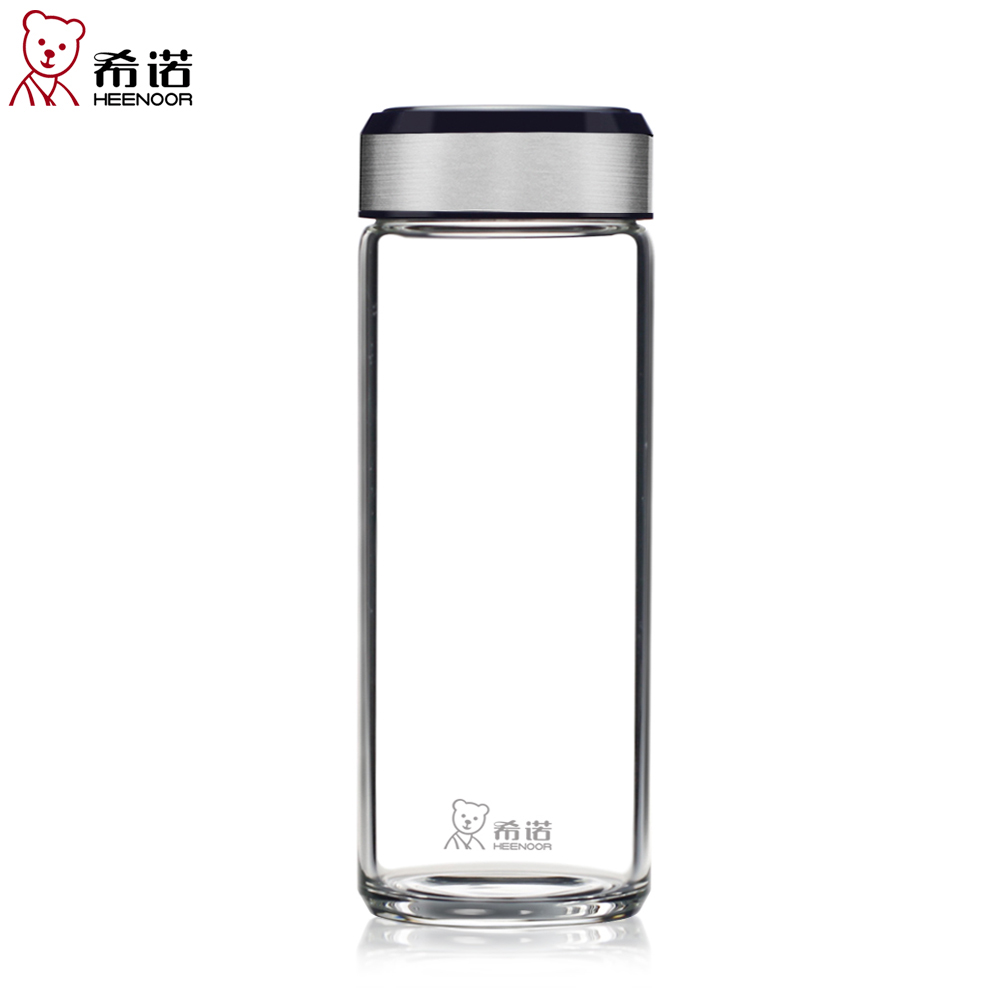 希诺玻璃杯单层办公水杯家用便携大容量高档商务茶杯子带盖水晶杯