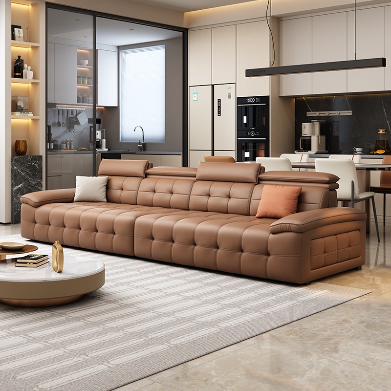 政府补贴意式极简劳伦斯直排真皮沙发别墅大平层家用客厅皮艺沙发