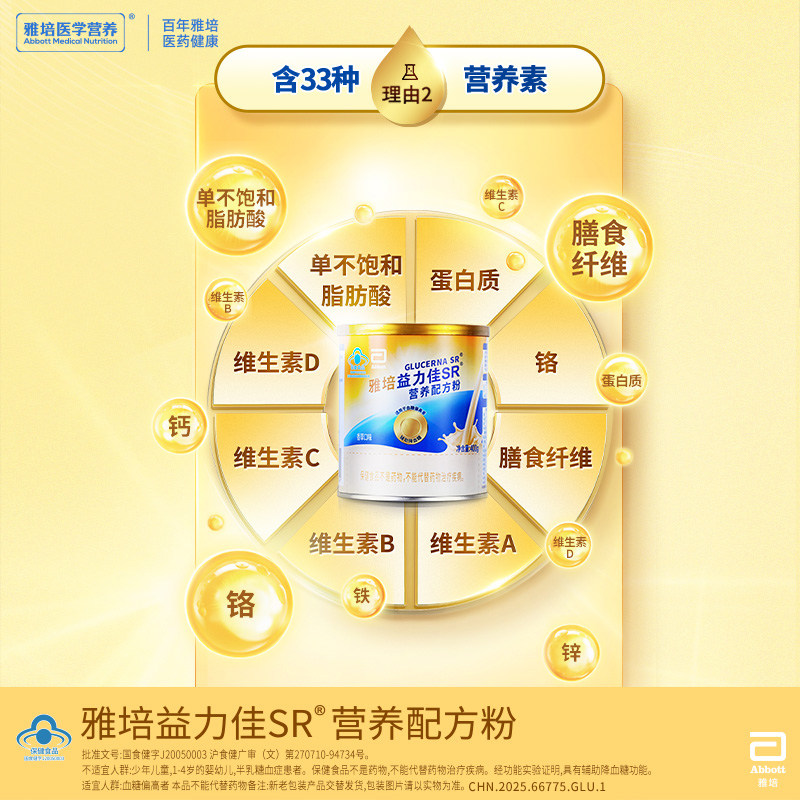 雅培益力佳SR低GI进口营养配方粉辅助降血糖控糖含蛋白质粉400g*4