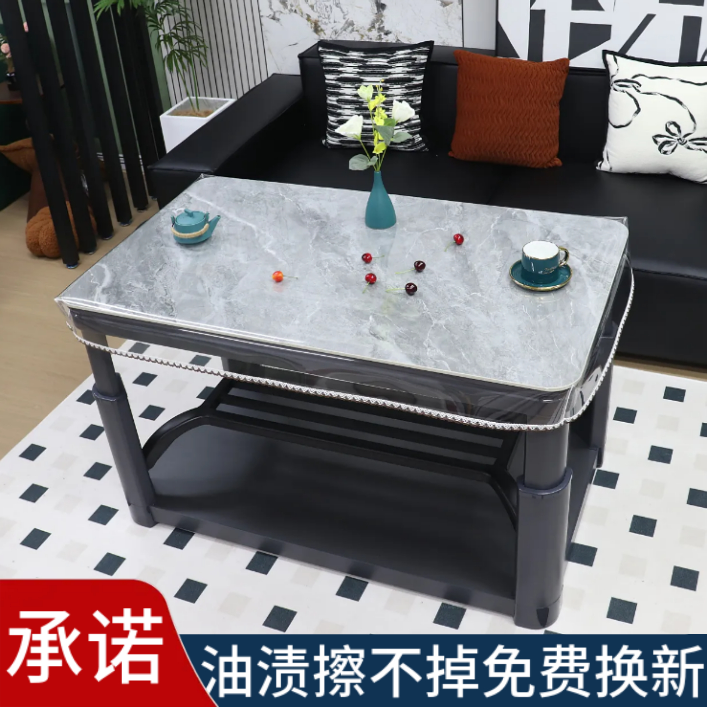 透明皮罩正方形防水防油桌布耐高温轻奢烤火桌罩套长方形垂边包角