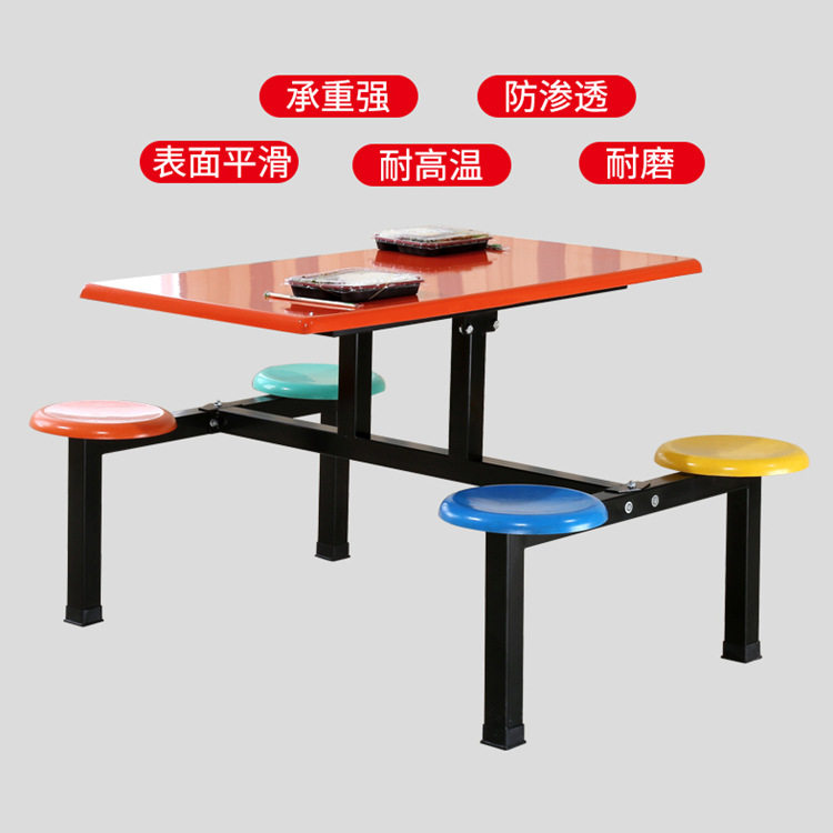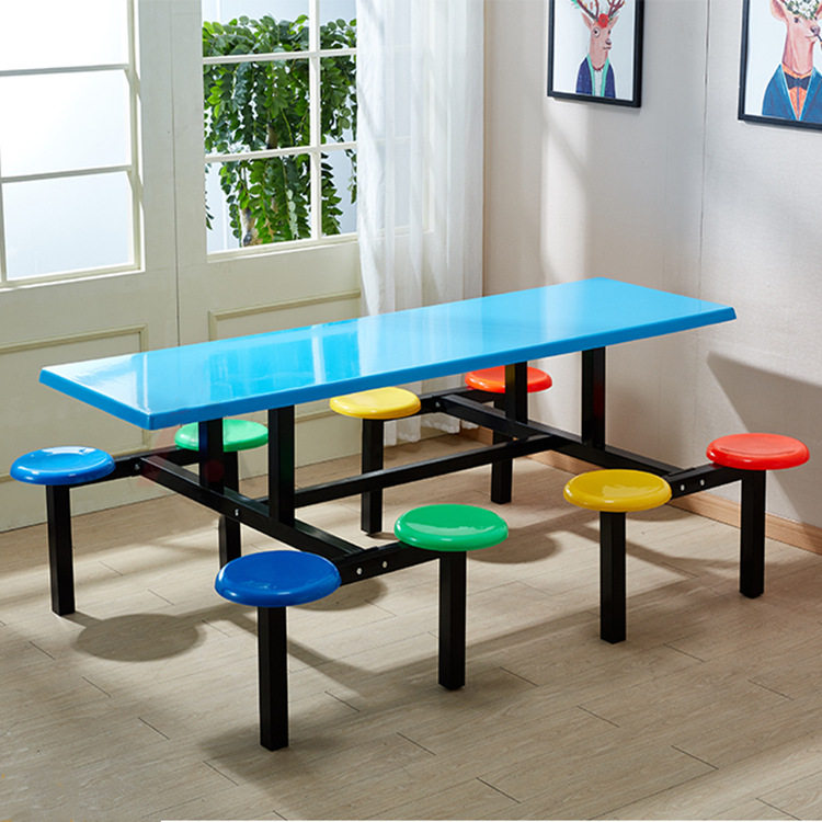 学校生食堂连体餐桌椅玻璃钢组合4人位6人8人员工厂玻璃钢餐桌椅