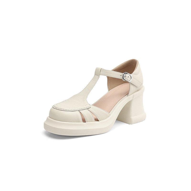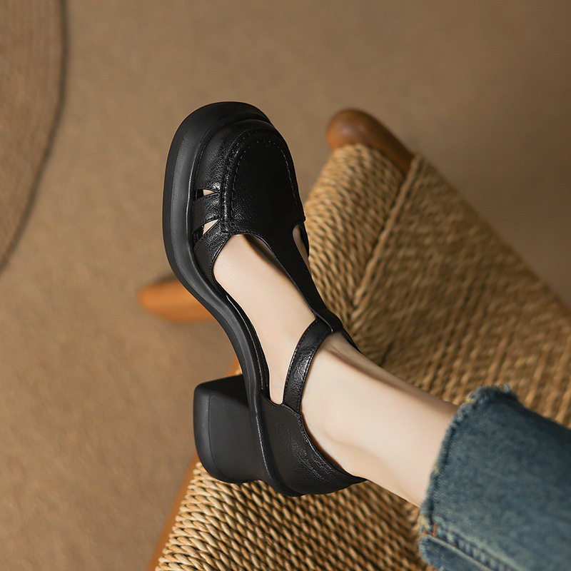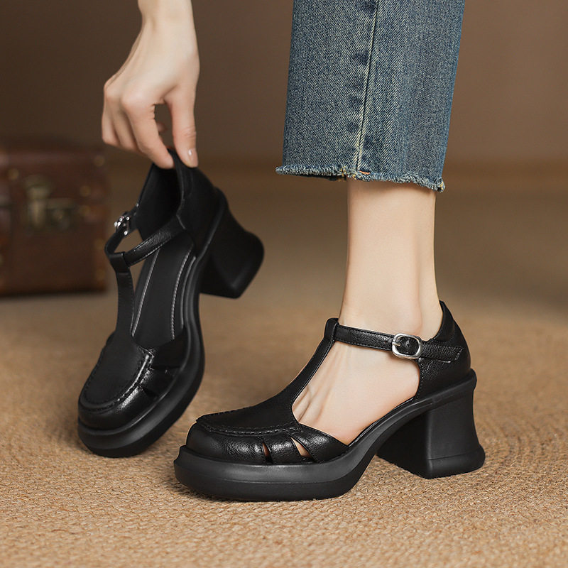 2025夏季小个子防水台松糕厚底罗马包头凉鞋女时尚丁字扣中空单鞋