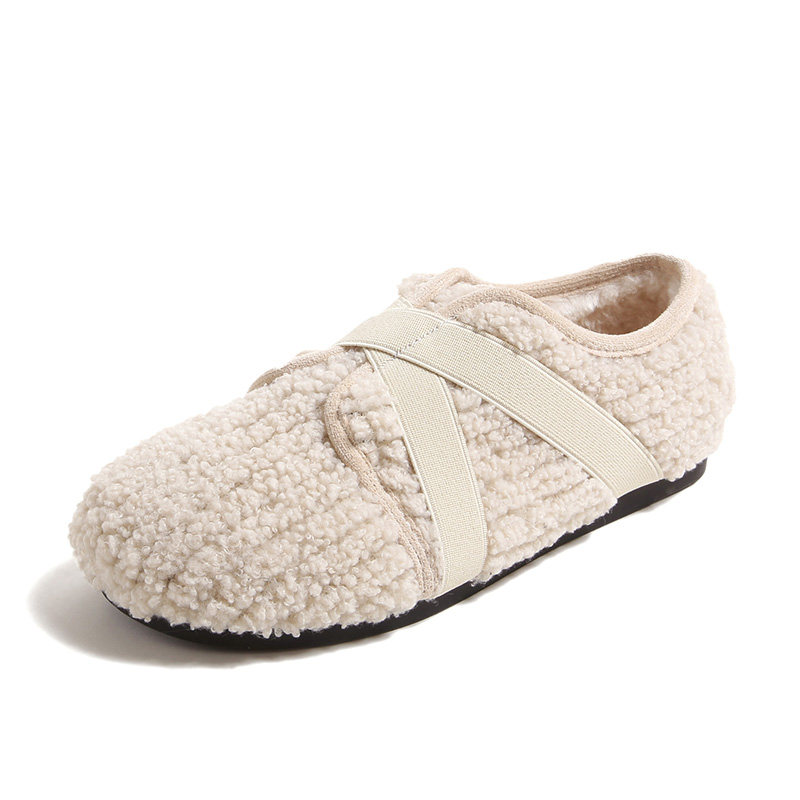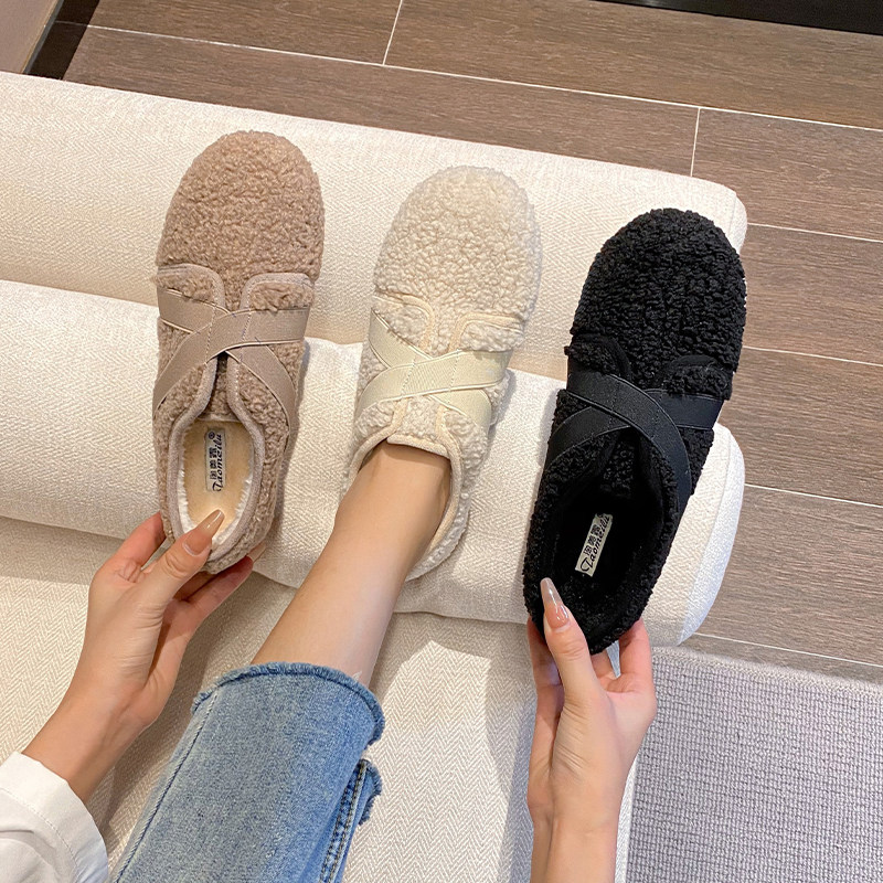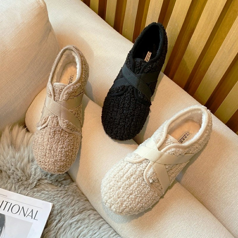 网红毛毛鞋女冬外穿平底羊羔毛豆豆鞋加绒弹力棉鞋大码女鞋41到43