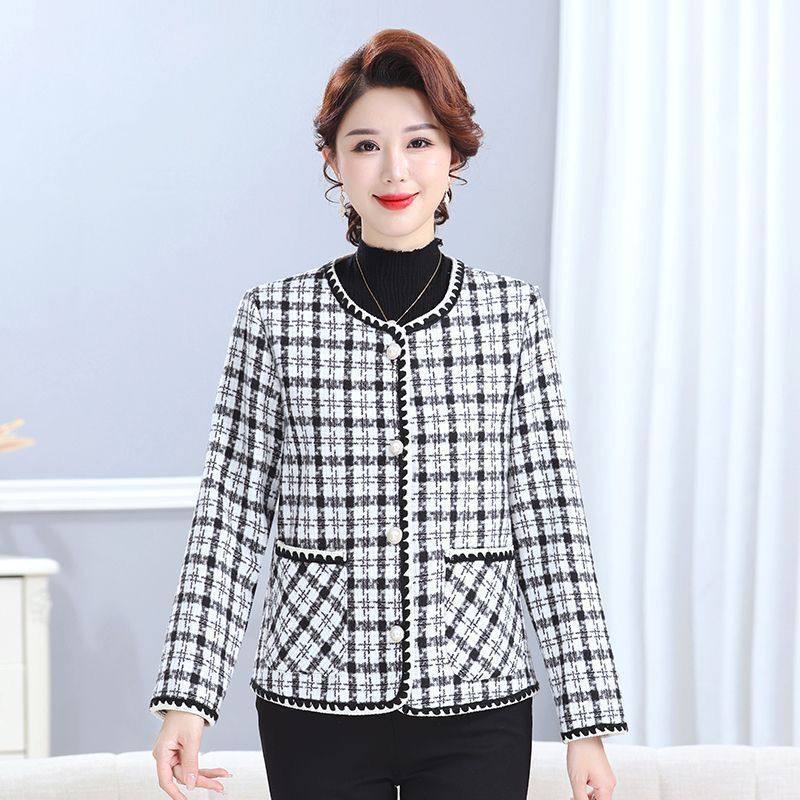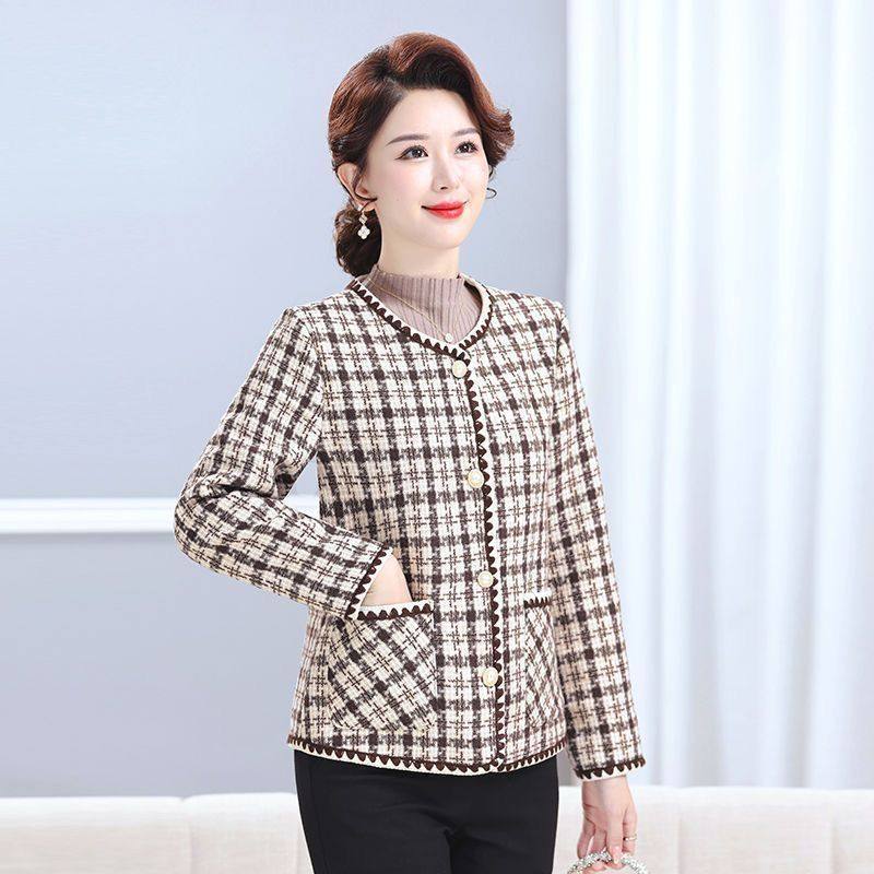 新款大码加绒加厚毛呢开衫上衣中老年秋冬洋气百搭大码妈妈外套女