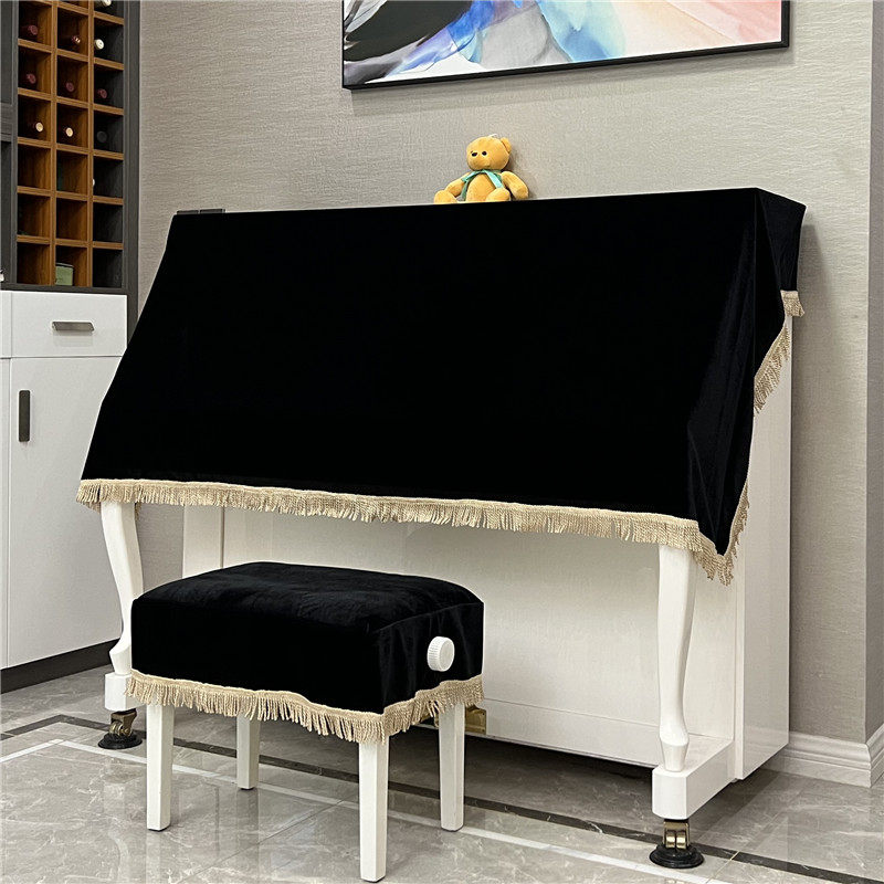 启颜简约现代丝绒钢琴全披北欧防尘罩盖布盖巾弹琴不取
