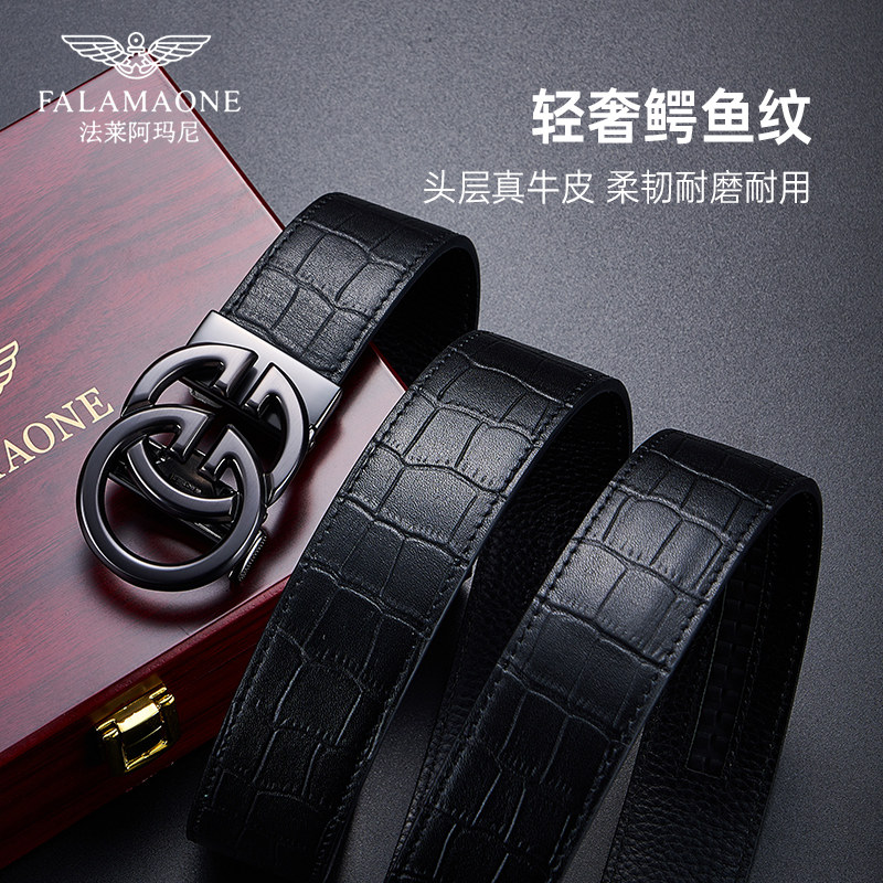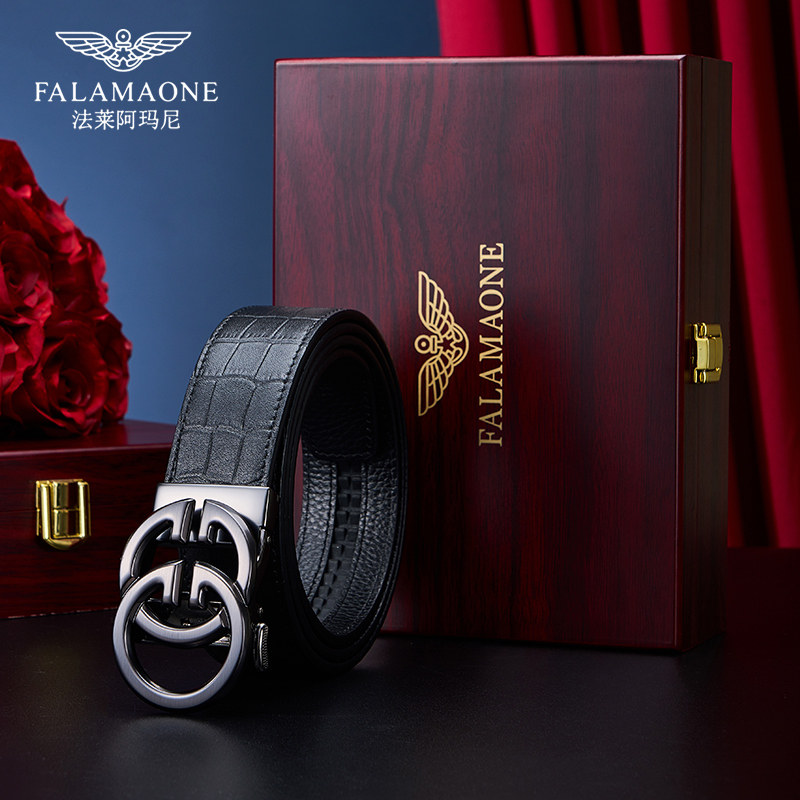 法莱阿玛尼皮带男士真皮奢侈品腰带男款自动扣2025新款纯牛皮裤带