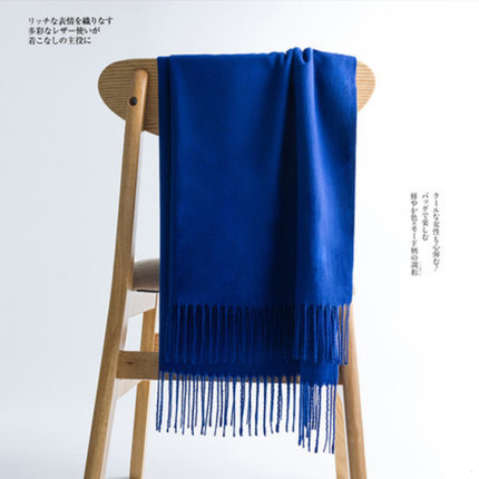 2025新款冬克莱因蓝围巾女秋冬季蓝色羊毛仿羊绒大加厚宝蓝色披肩