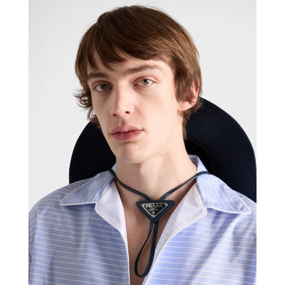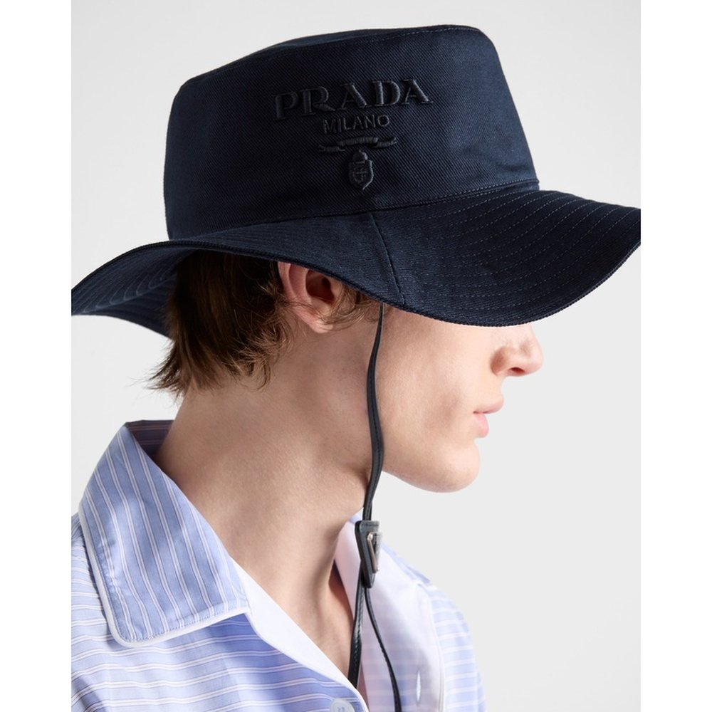 自营欧洲直邮Prada普拉达 男士蓝色棉金属三角标识宽檐帽帽子