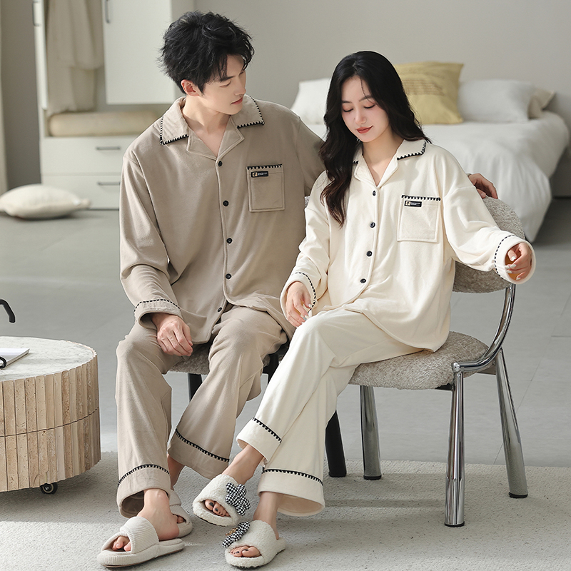 莫代尔情侣睡衣女秋冬季新款保暖珊瑚绒套装海岛绒家居服男可外穿