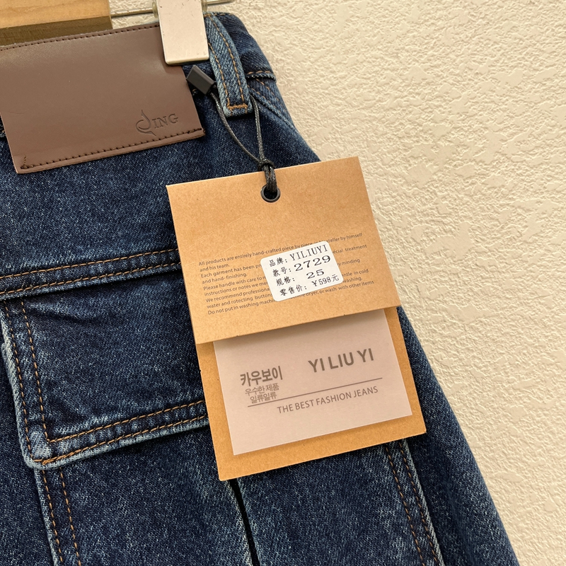 FASHION JEANS欧货YILIUYI壹流壹2729牛仔裤女加绒压线弯刀裤香蕉