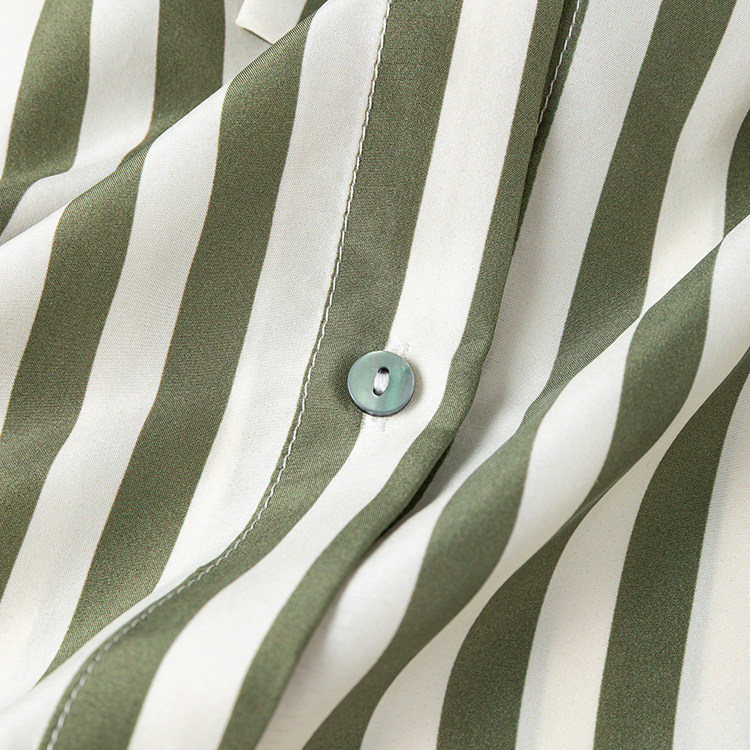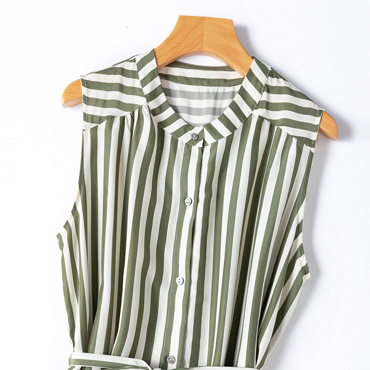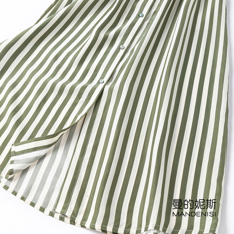 优雅橄榄绿白色竖条纹!软糯真丝砂洗电力纺长款背心裙连衣裙女