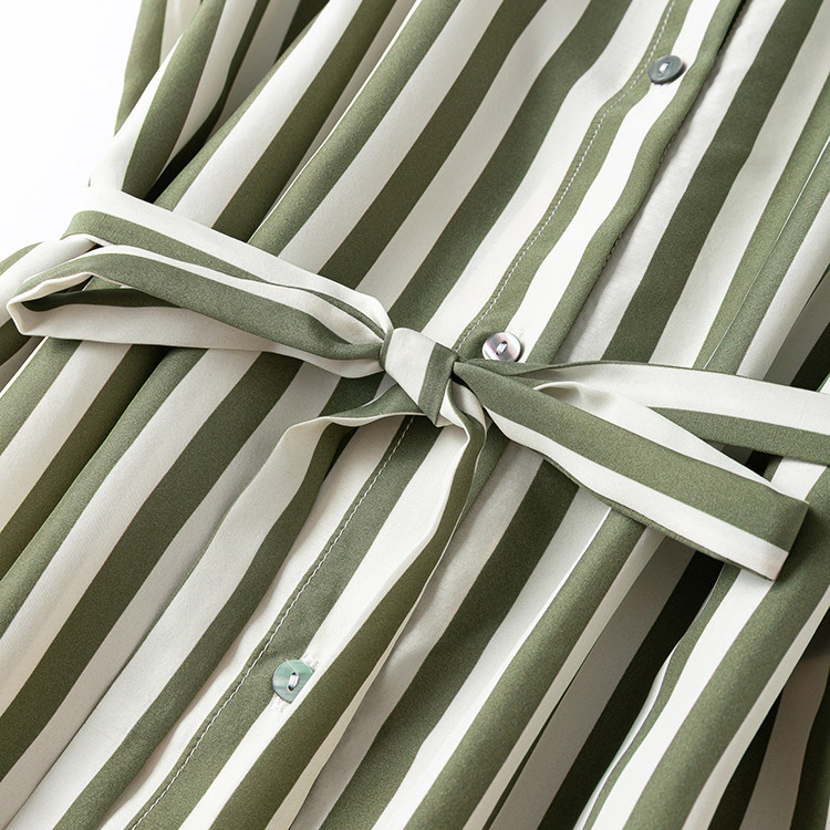 优雅竖条纹!软糯真丝砂洗连衣裙