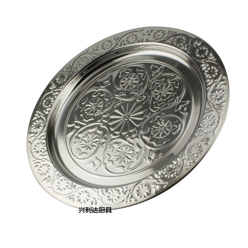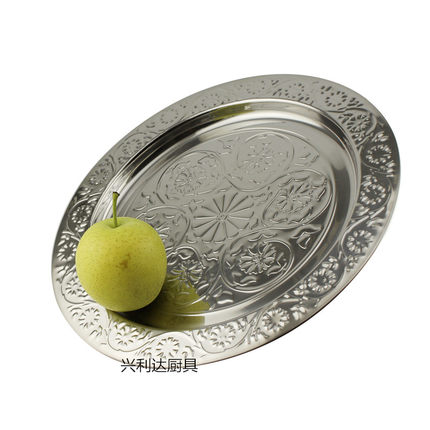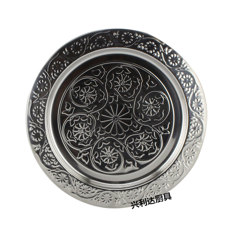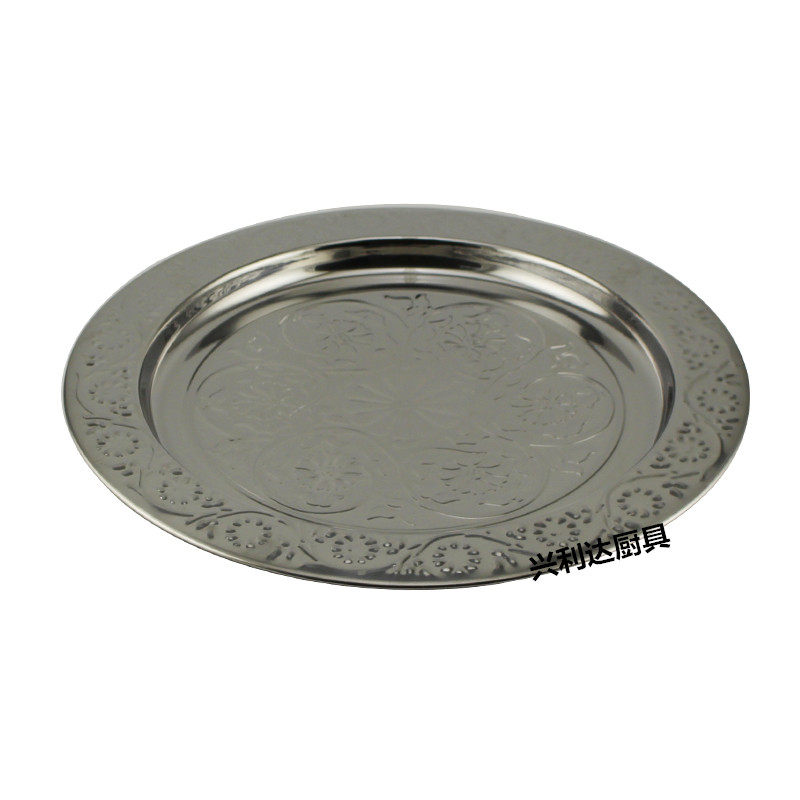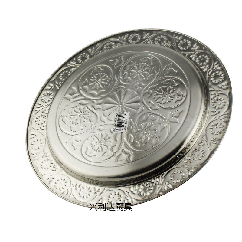 不锈钢圆盘子北欧印花托盘创意大浅盘平盘碟子家用平底菜盘水果盘