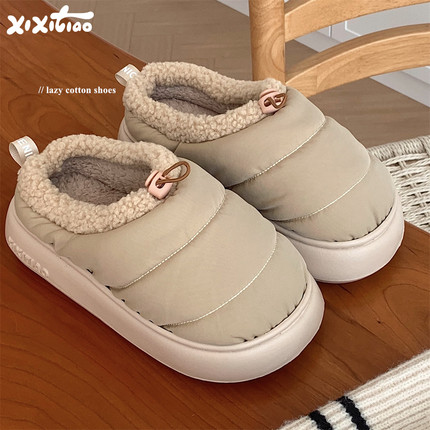 细细条 日系简约休闲棉鞋男女冬季加绒保暖防滑外穿家居棉拖鞋ins