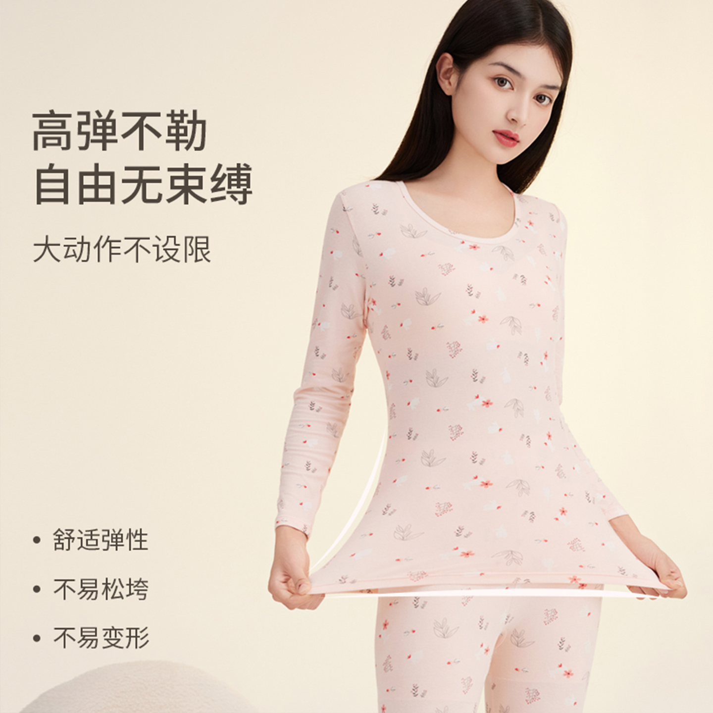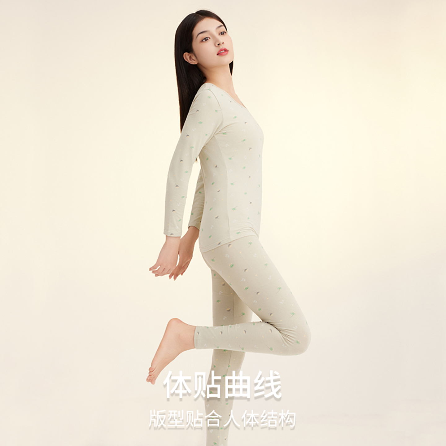 草源春暖女士薄款秋衣秋裤套装 纯棉打底棉毛衫 少女学生