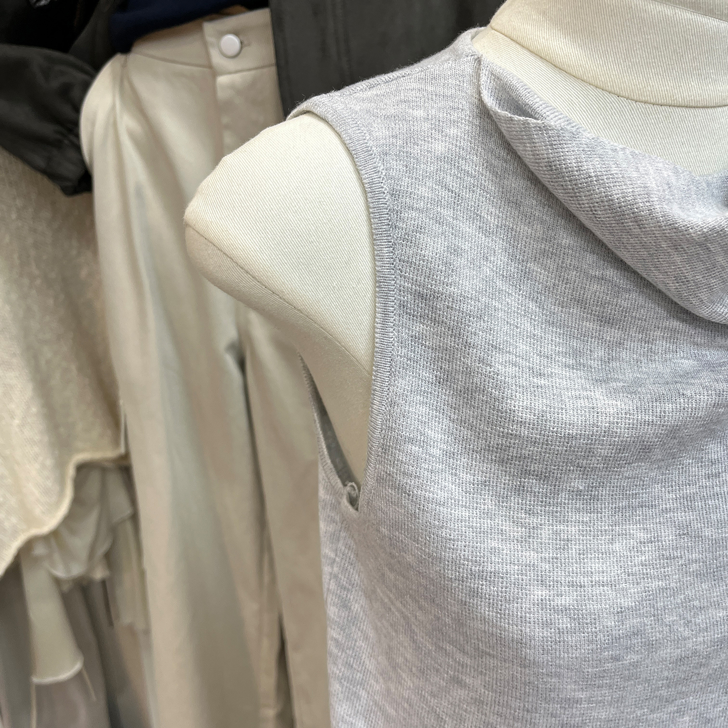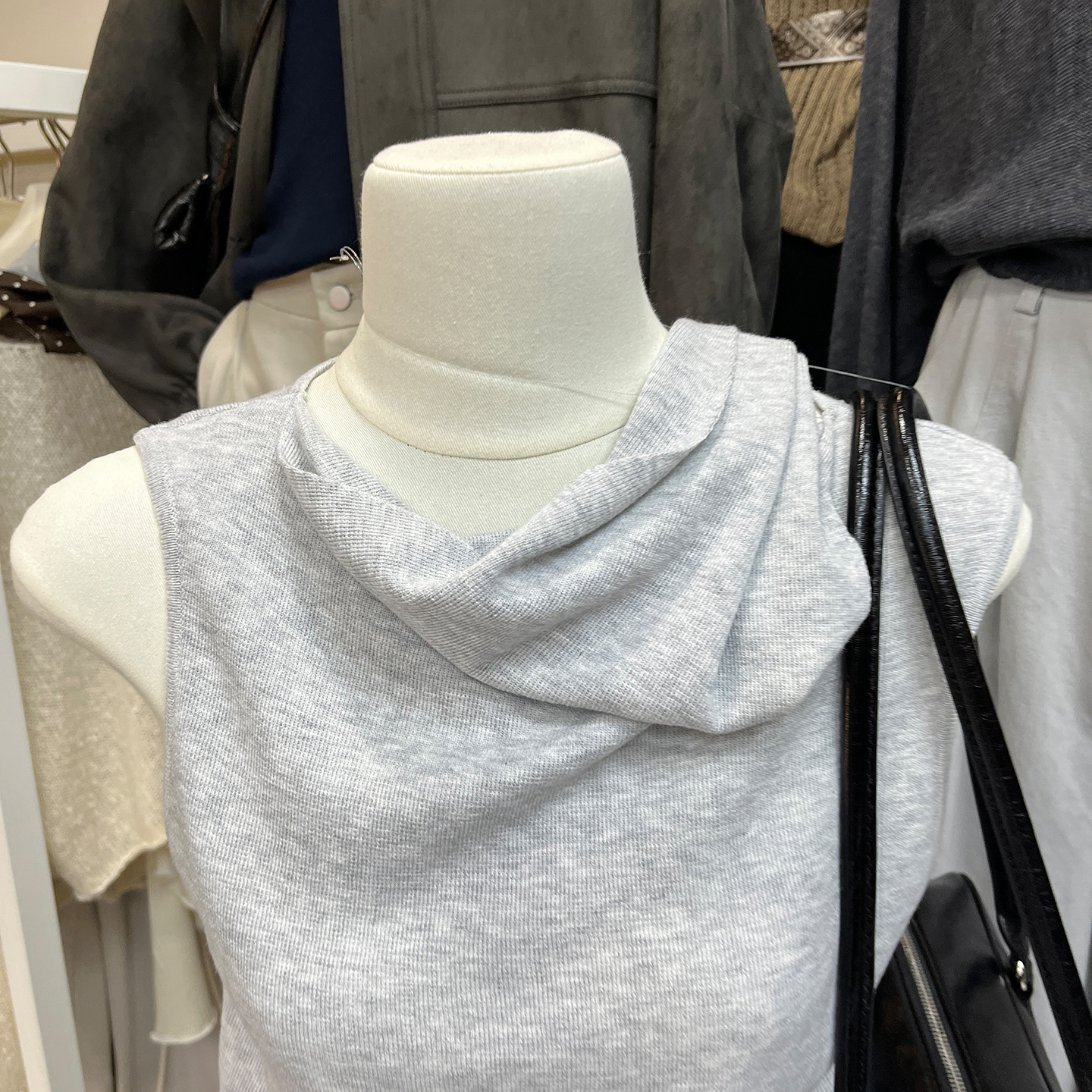 HUGLIA韩版十三行女装2025秋装新款围脖荡领飘带无袖针织衫背心女