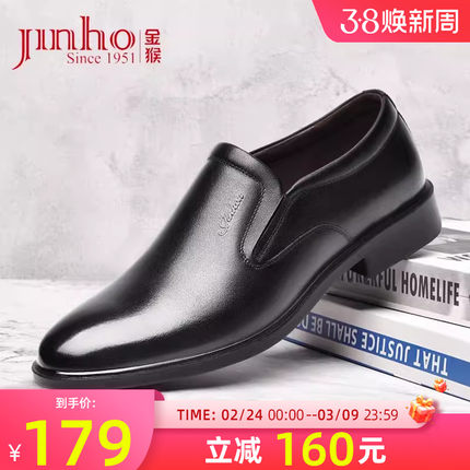 金猴男鞋春秋季软底英伦商务正装鞋办公室中年男真皮软面爸爸皮鞋