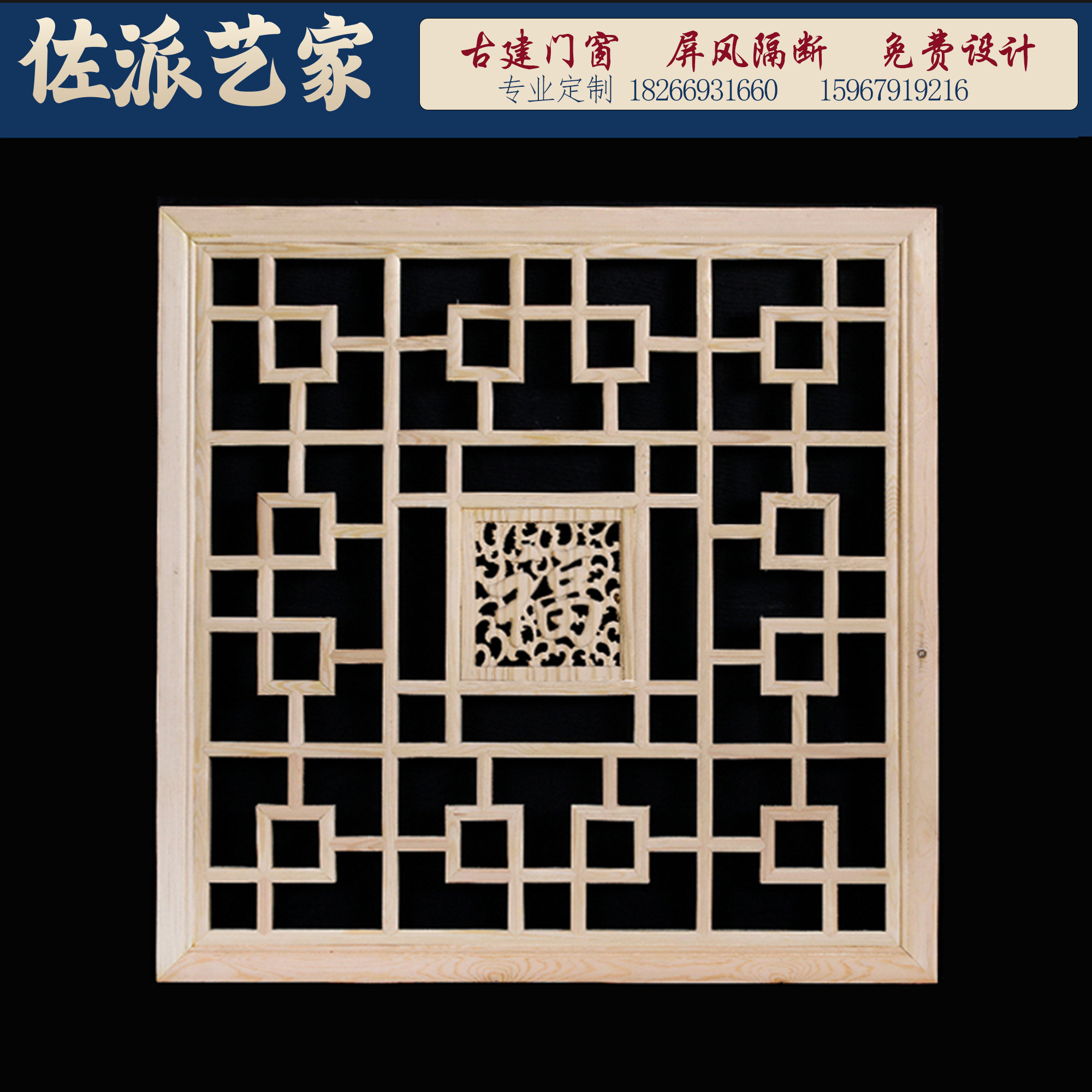 东阳木雕中式花窗镂空中式实木吊顶灯罩花格装修客厅玄关窗格壁挂