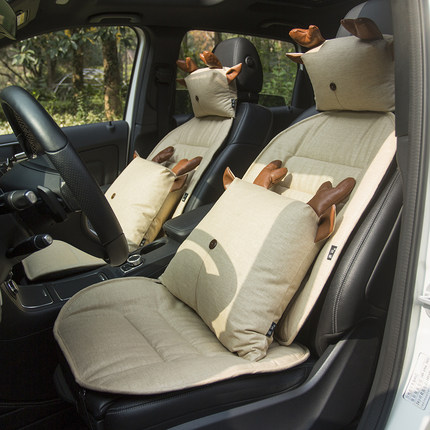 鹿 汽车头枕腰枕安全带护肩座垫 车用套装 淡饭创意棉麻汽车用品