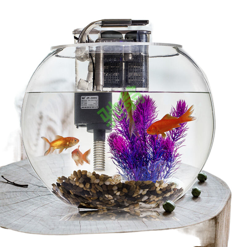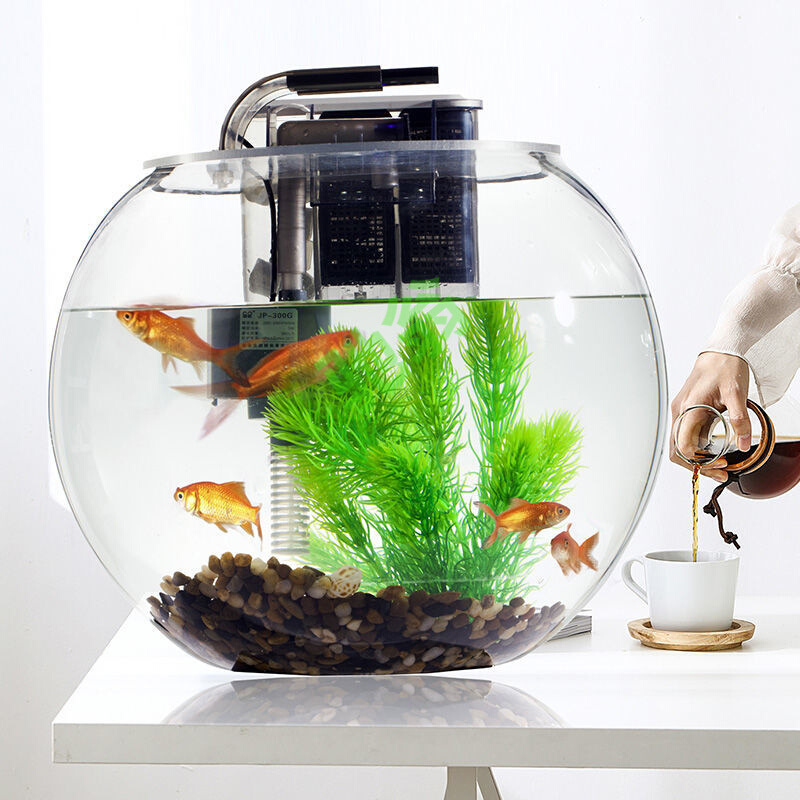 yut加厚超白玻璃鱼缸圆形客厅小型桌面创意水族箱懒人免换水金鱼