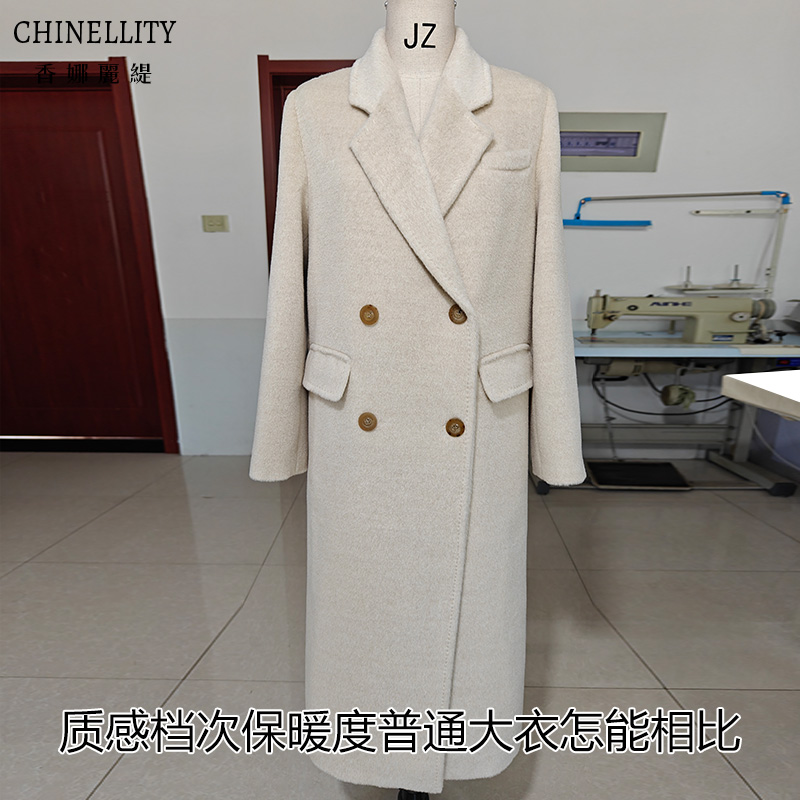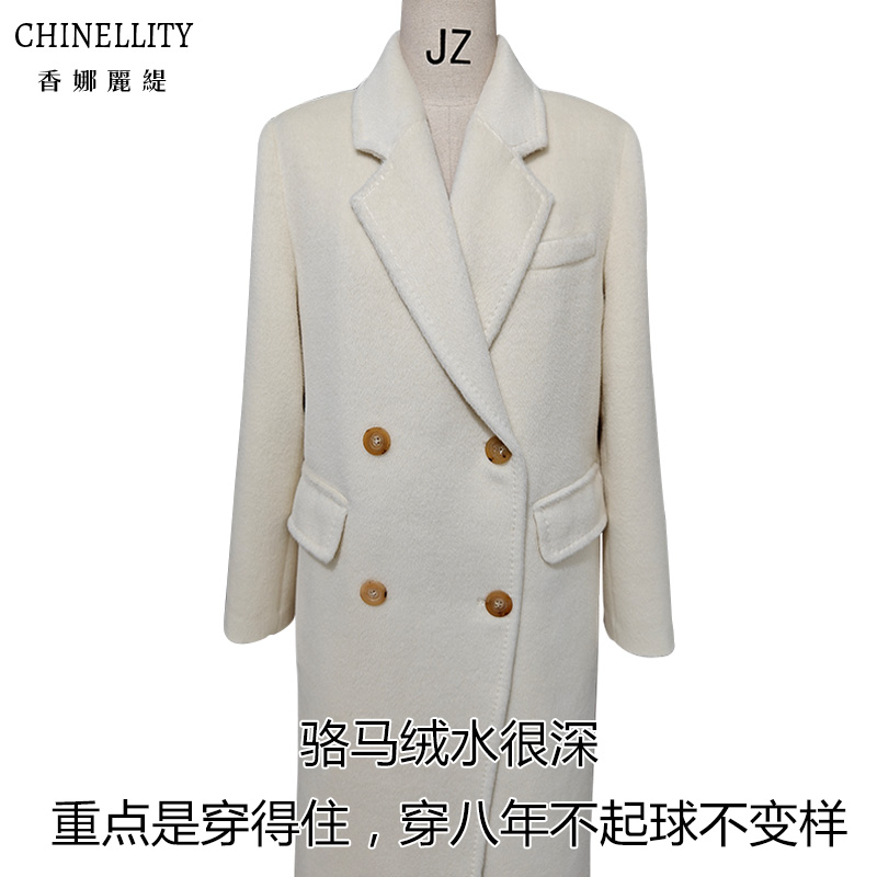 骆马绒级奢品加厚高端带里衬白色黑色长款大衣超保暖毛呢外套女