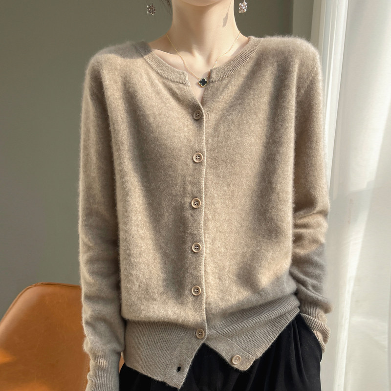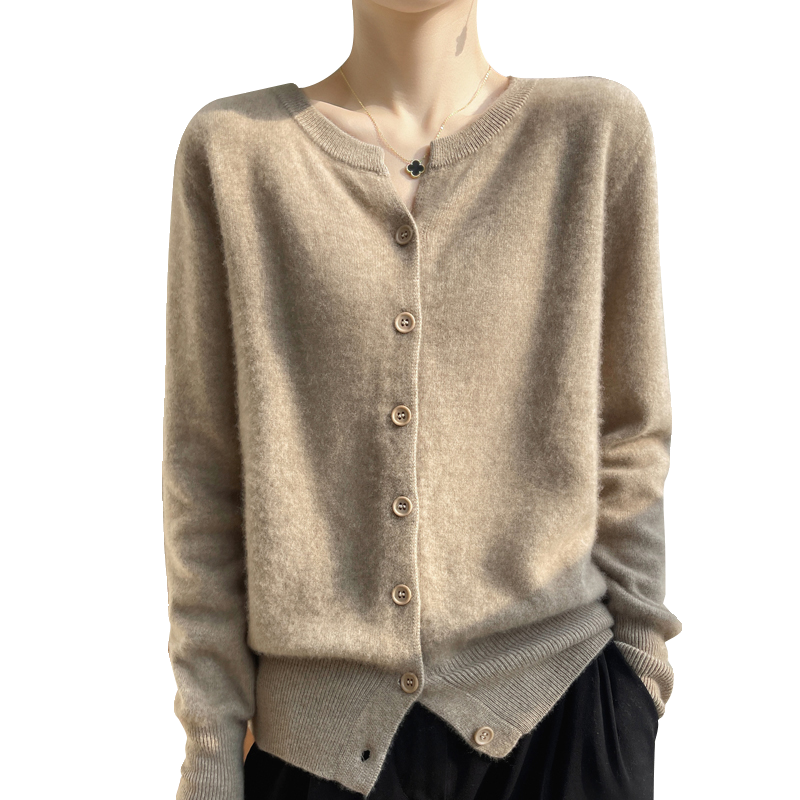 春秋薄款羊毛针织开衫女简约圆领宽松短款羊绒衫外搭毛衣外套上衣