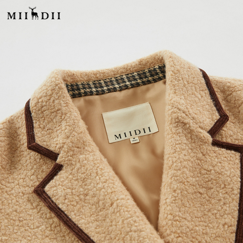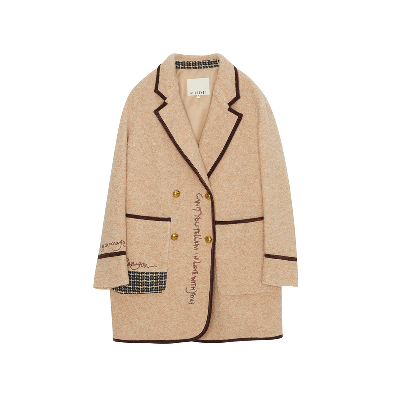 谜底羊毛呢大衣女冬新款学院风设计感绣花宽松外套234MD1527