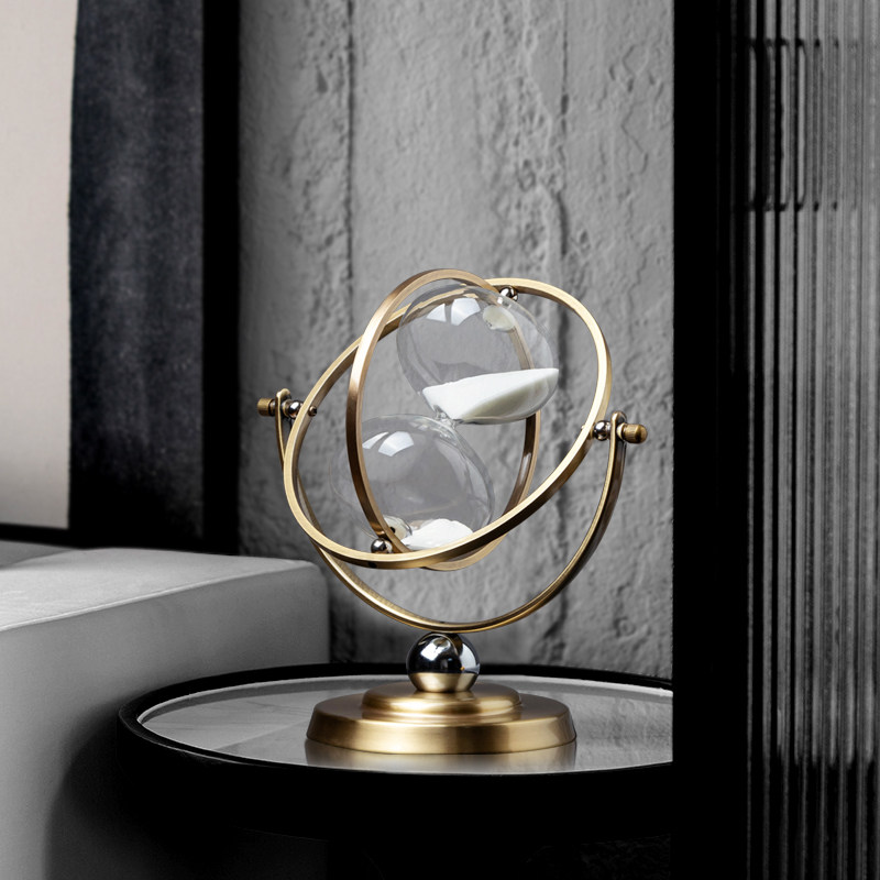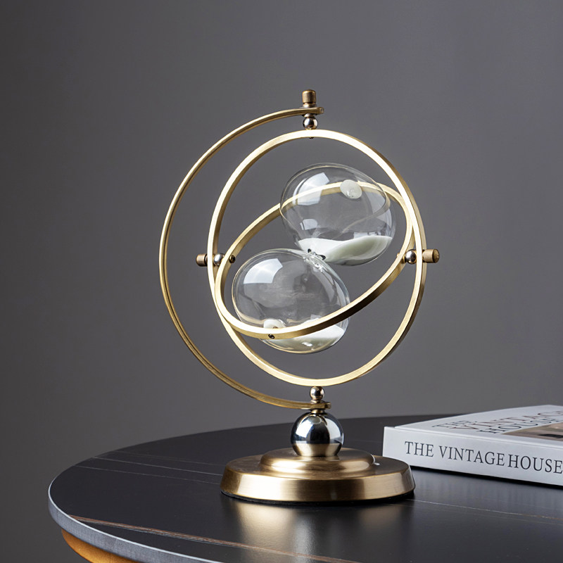 复古轻奢地球仪沙漏创意办公室书柜酒柜可旋转漏斗金属摆件装饰品
