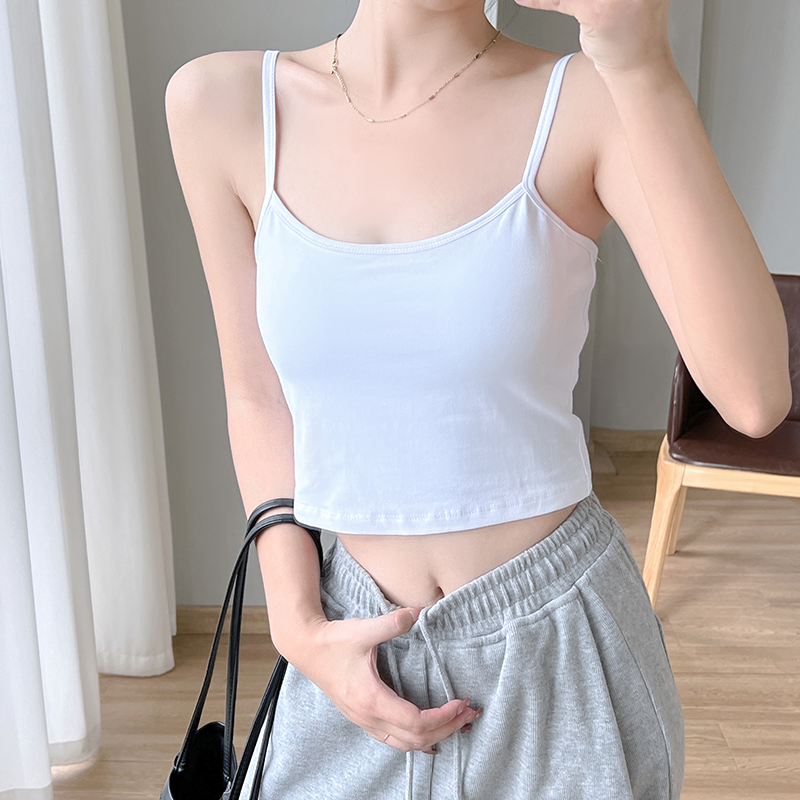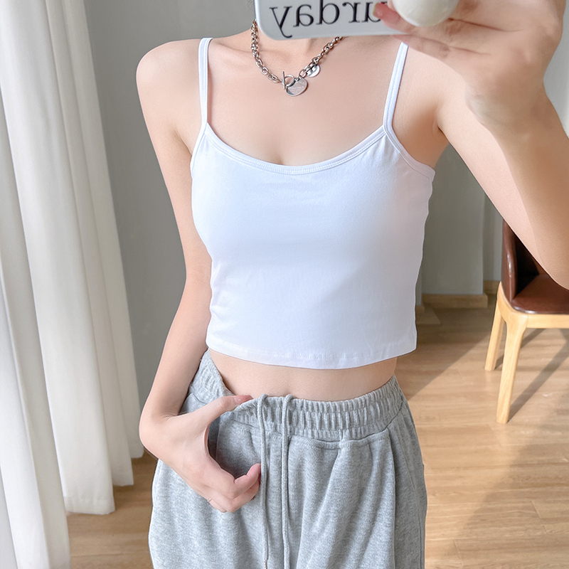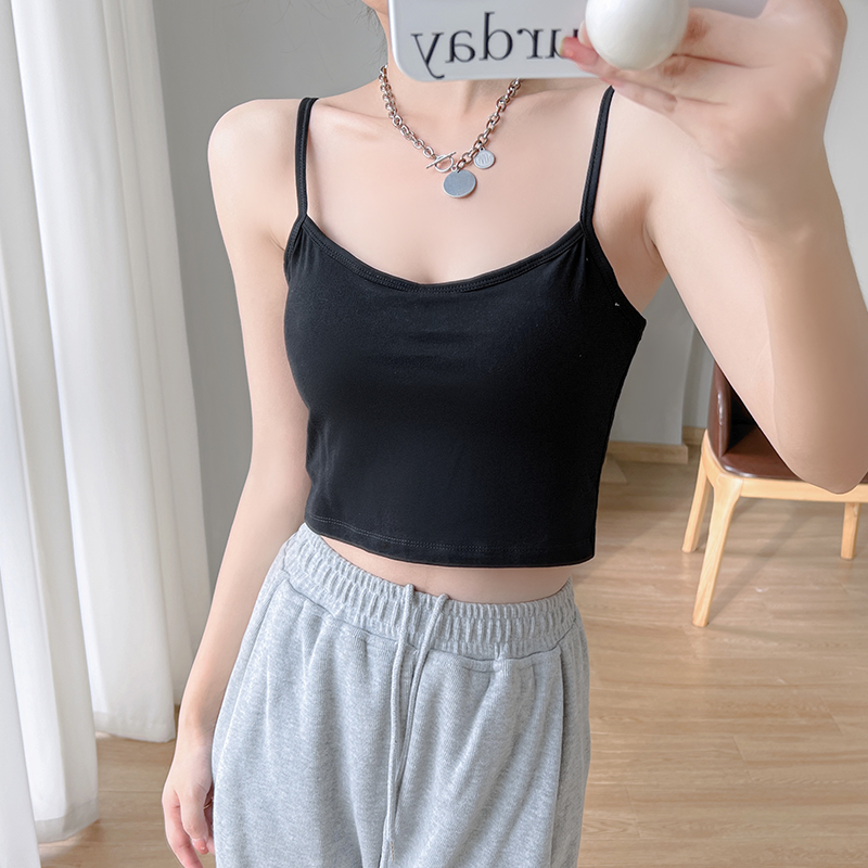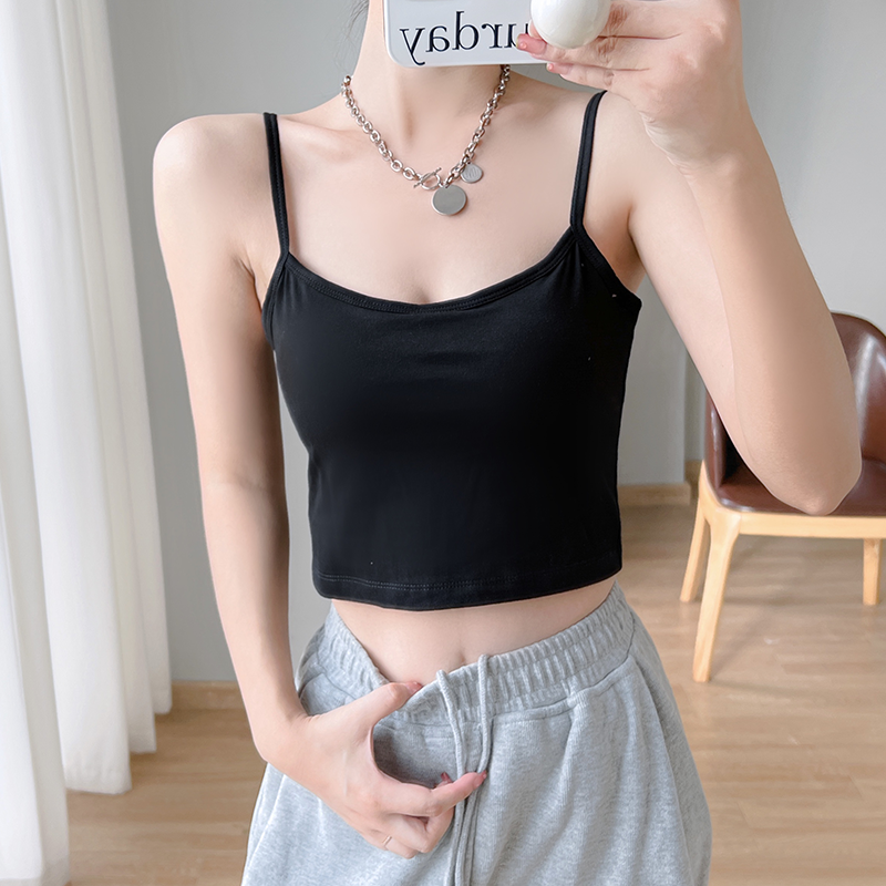 新款带胸垫低领内搭上衣短款露肚脐夏季韩版百搭吊带背心打底衫女
